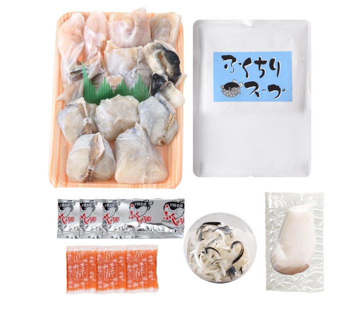 とらふくの身とアラを豪快にブツ切りにし、ふくちり鍋用にしました。さらに、とらふくの希少部位である生白子もセットにしています。とらふくの持つ様々な味・香り・食感を存分にお楽しみください。 【商品内容】とらふぐちり(切身、アラ)300g、とらふぐ皮60g、とらふぐ生白子50g、ふぐちりスープ300g、ふく醤油30ml×3、もみじおろし10g×3 【アレルギー指定食品(28品目)】小麦 【賞味期限】冷凍90日 【保存方法】要冷凍(-18℃以下で保存) 【配送方法】冷凍便 ※こちらの商品はメーカー直送の為、他の商品とは同梱出来ません。