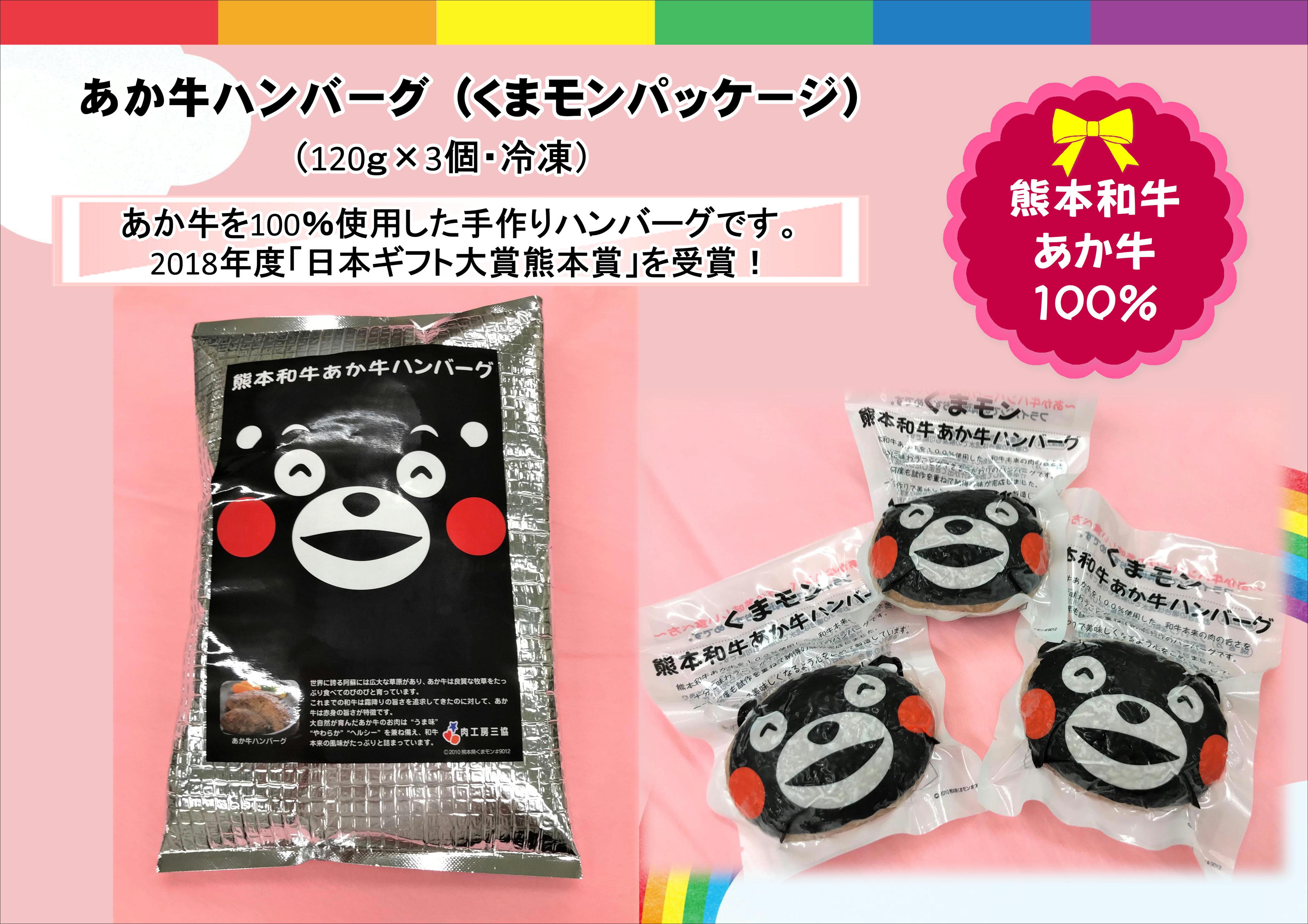 ●商品内容:あか牛ハンバーグ120g×3個 ●賞味期限:冷凍で30日 ●原材料:牛肉、牛乳、ソテーオニオン、パン粉、ケチャップ、食塩、コショー、