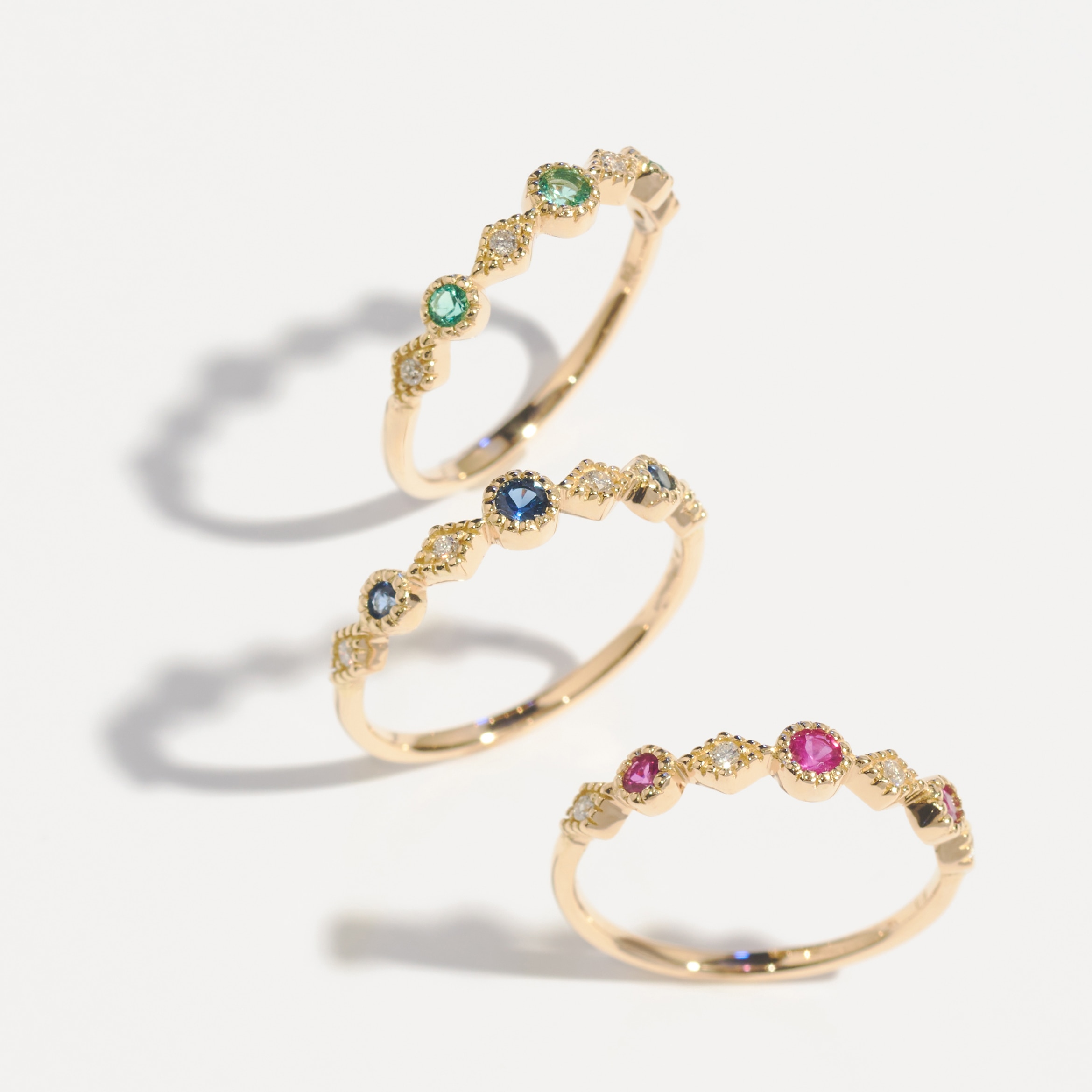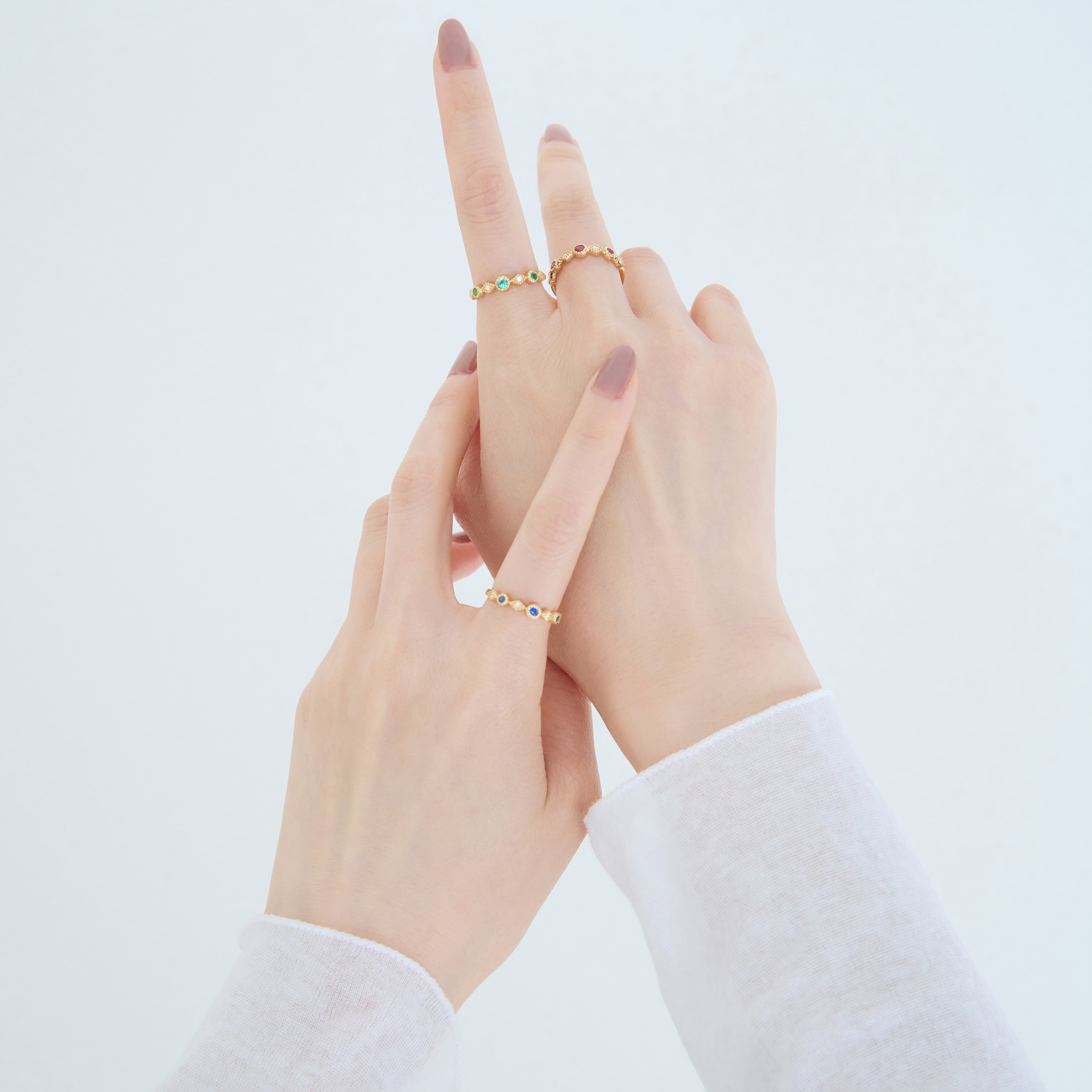 エメラルド、ルビー、サファイア 3種類のカラーストーンでご用意いたしました。 エメラルド5月 ルビー7月 サファイア9月 誕生石でお選びいただいても 好きな宝石でお選びいただいても◎ 色鮮やかなカラーストーンとキラキラと輝くダイヤモンドが手元を明るくしてくれます。