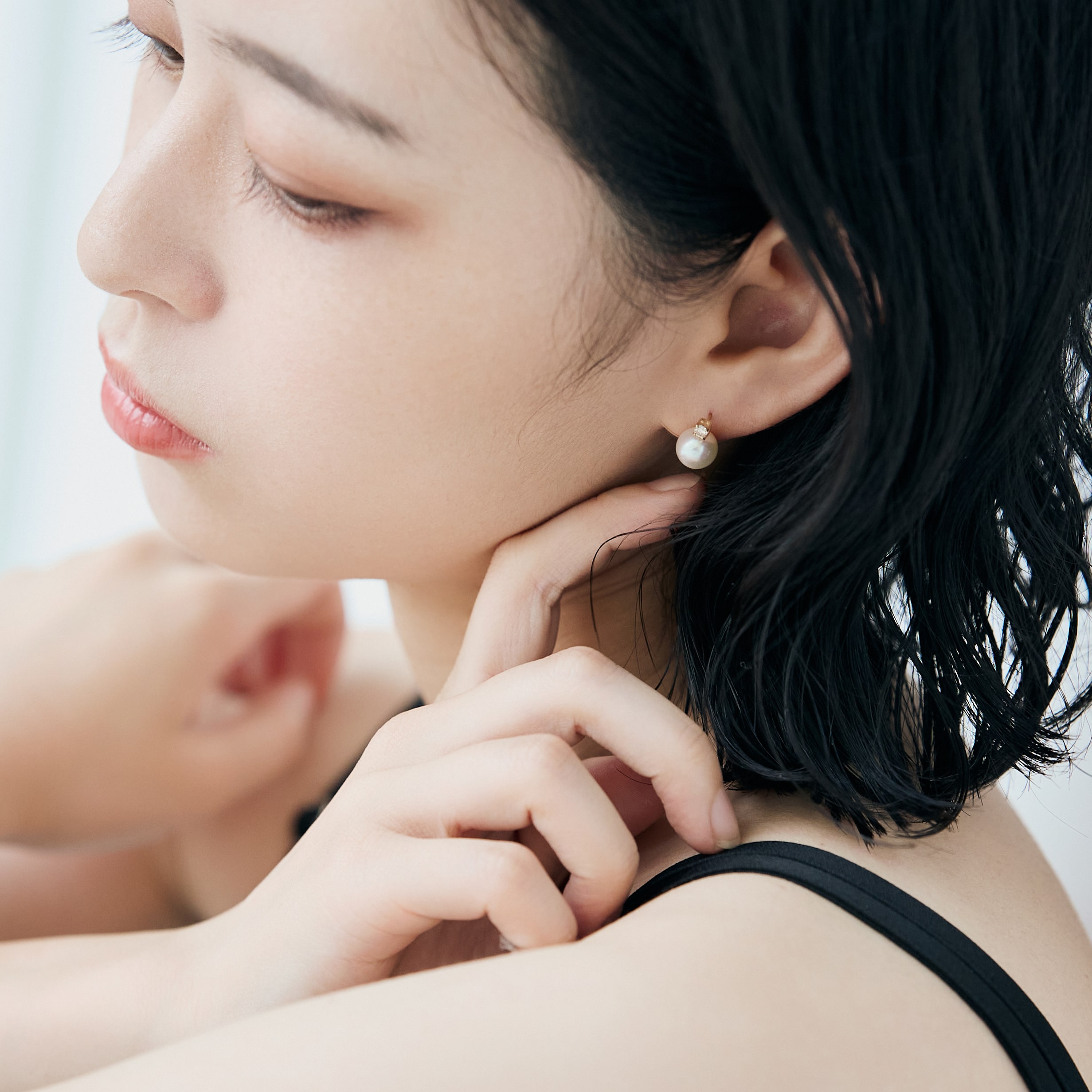 シンプルなフォルムに上質なアコヤパールを添えたデザイン。 カジュアル・モード・シック・オケージョンにも使える、大活躍の万能アイテムです。