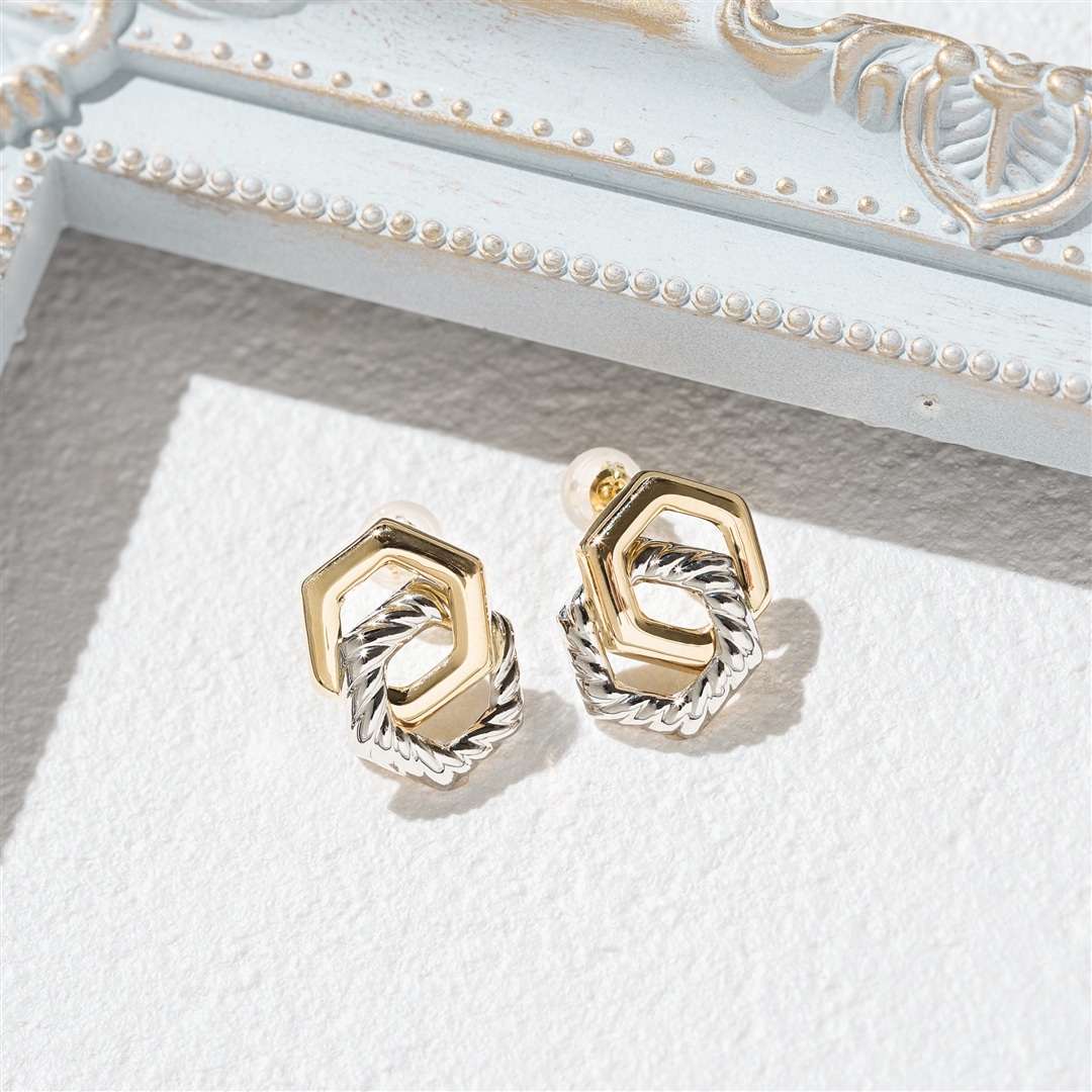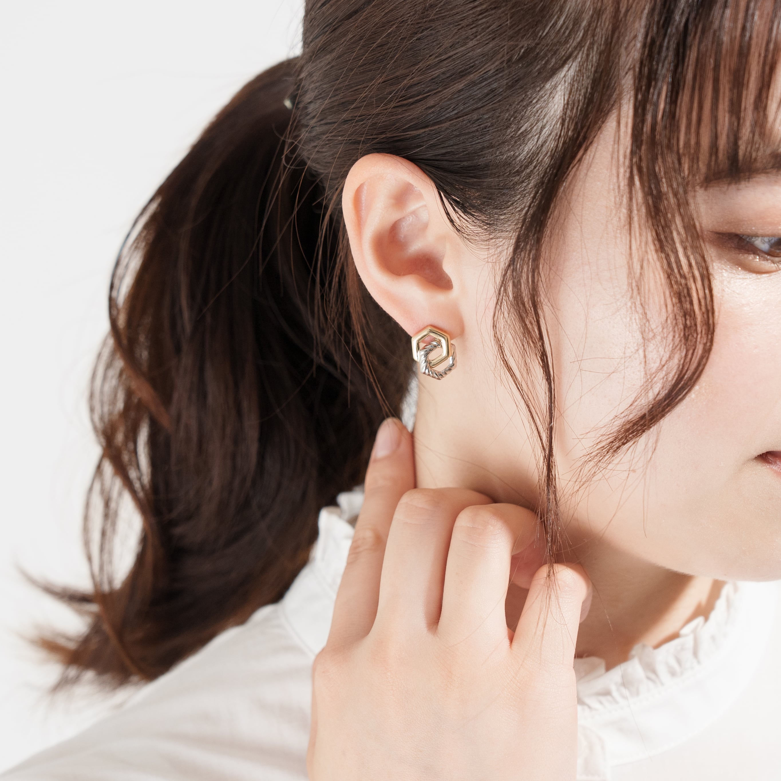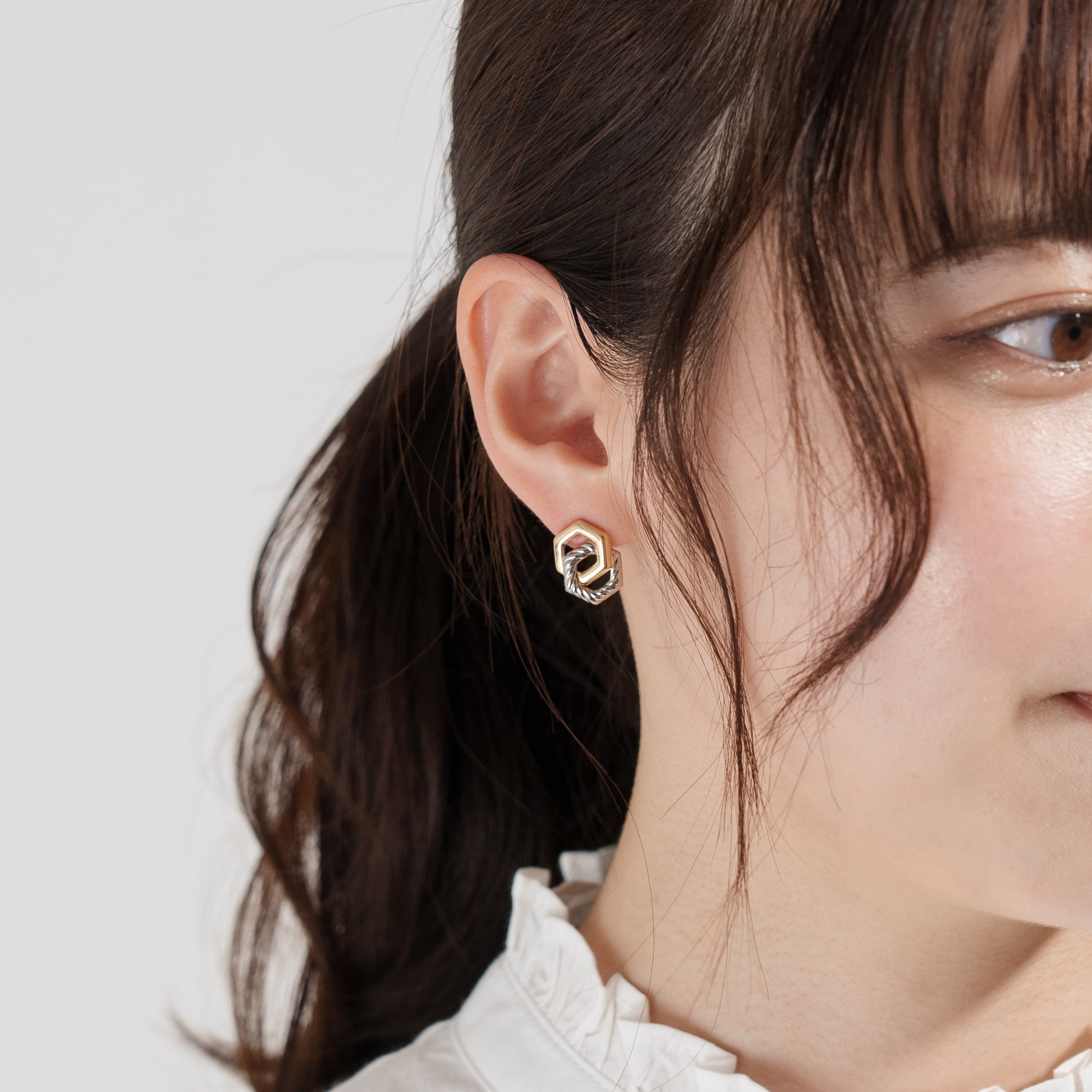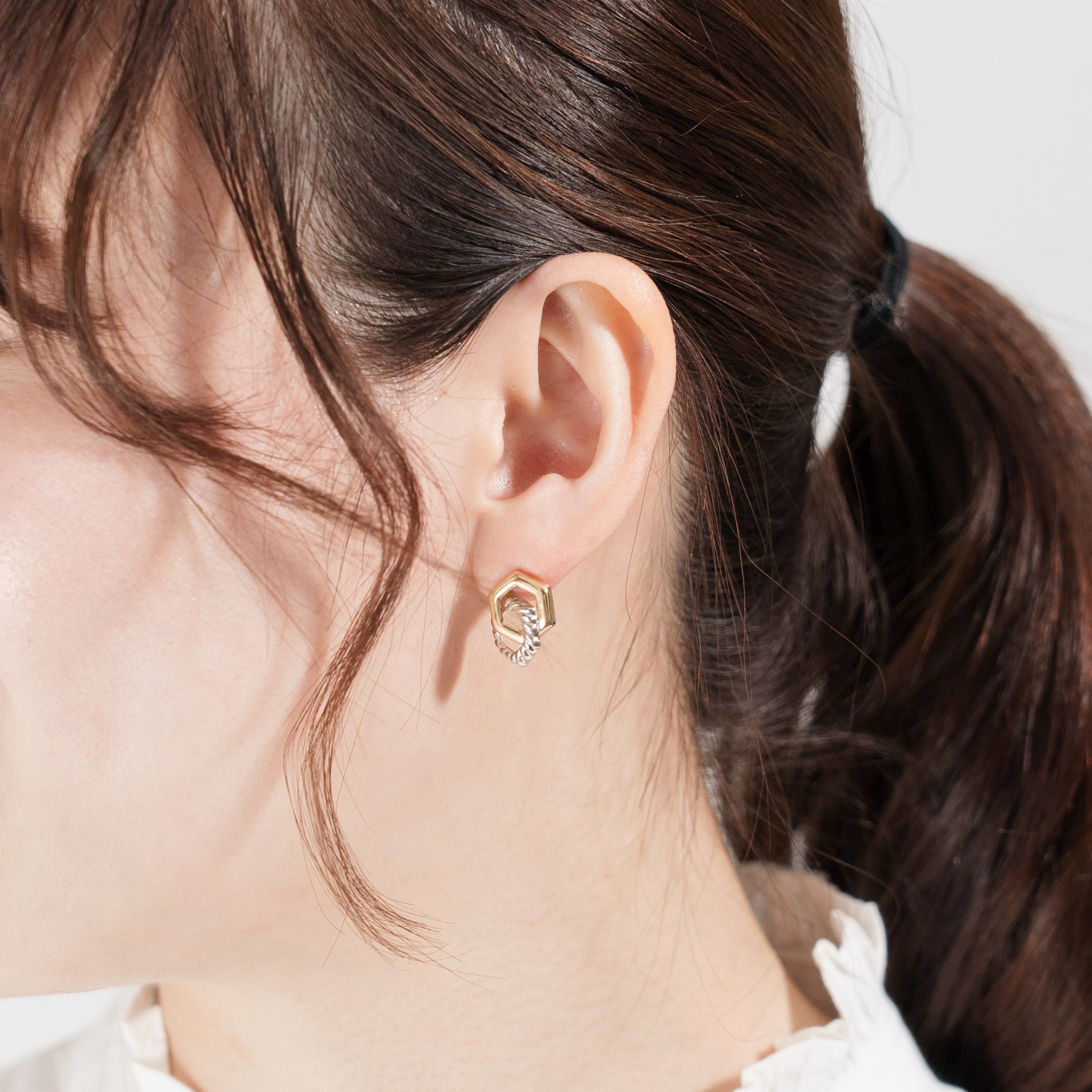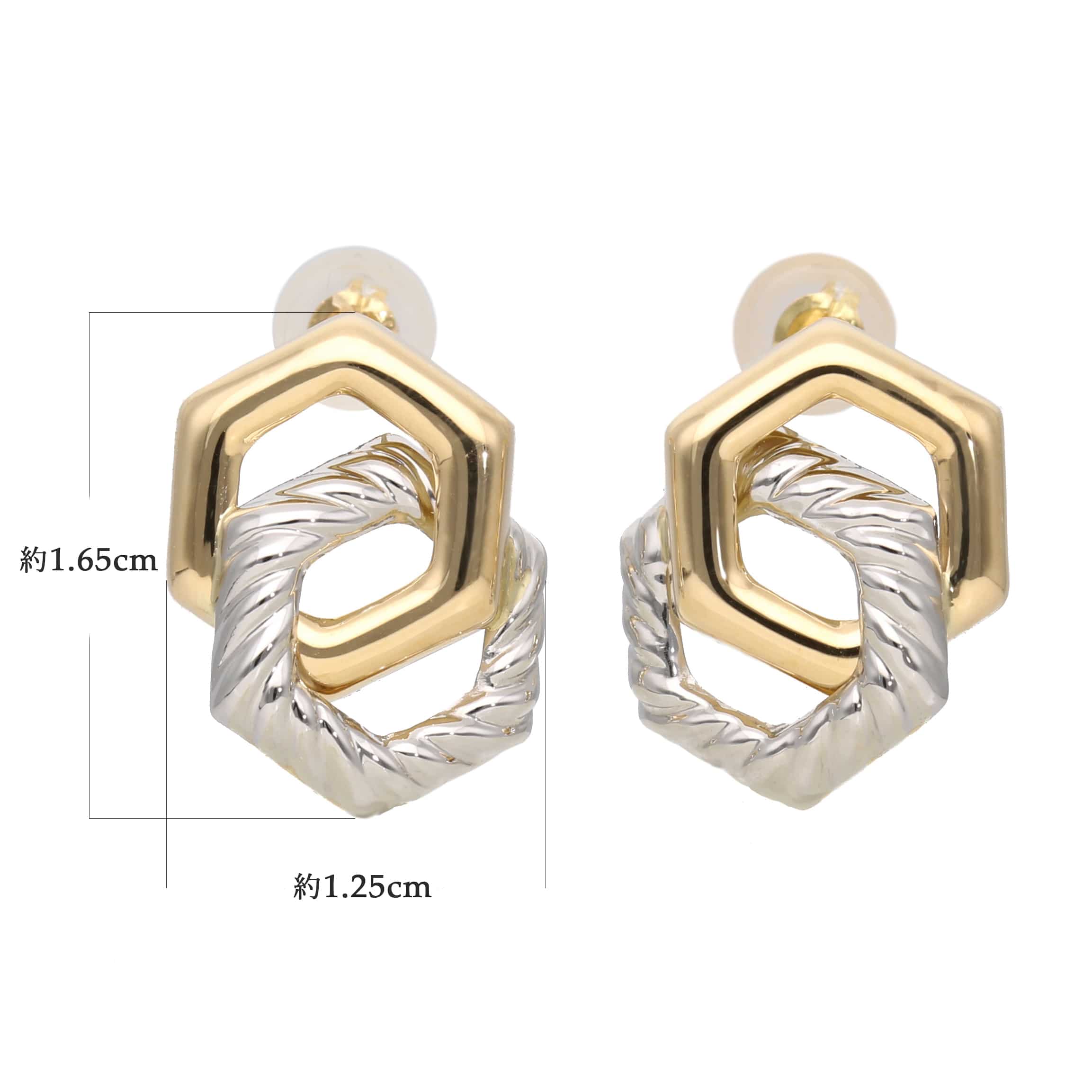 K18イエローゴールドとプラチナのコンビピアス。 イエローゴールドとプラチナが存在感のあるデザインです。 2色のコントラストが美しく耳元を華やかに彩ります。
