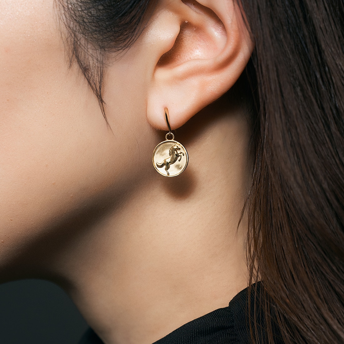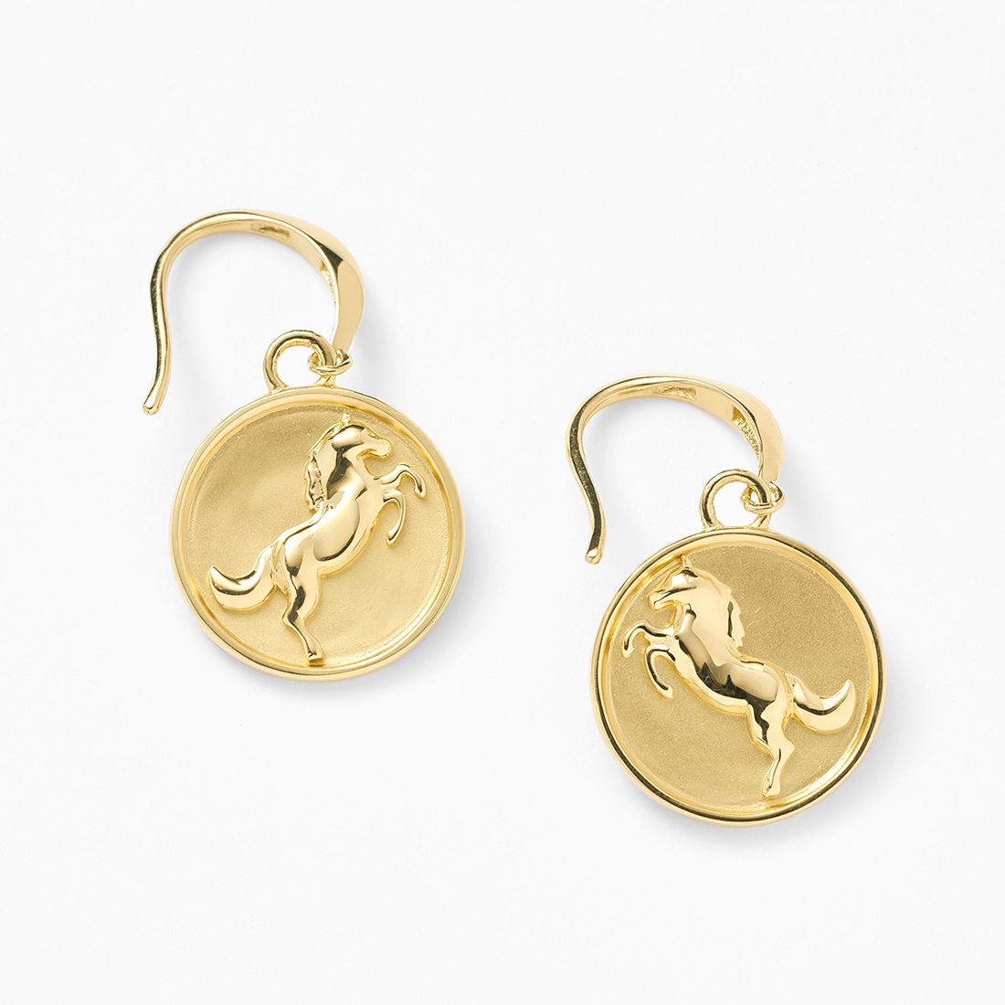 幸運を呼び込む馬モチーフピアス幸運が駆け込んでくると言われている馬モチーフのフックピアス。しっかりと枠の輝きを感じられる重厚感のあるデザインは、耳元で存在感を放ちます。表面の表裏をつや消し加工し、上品でやさしい輝きをお楽しみいただけます。躍動感あふれる馬シルエットのデザインは、駆け上がる姿から出世運、勝負運をアップさせてくれると言われています。アニマルモチーフがお好きな方、午年生まれの方への贈りものにもおすすめのアイテムです。