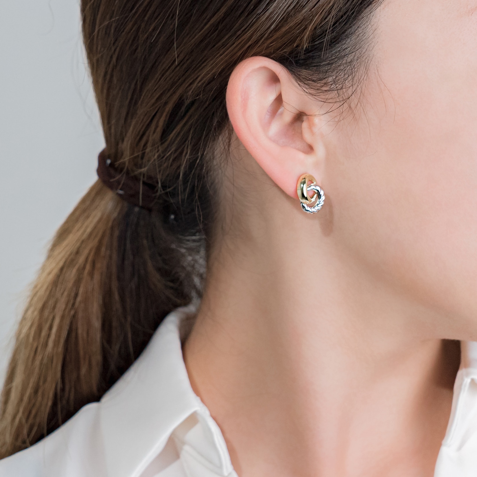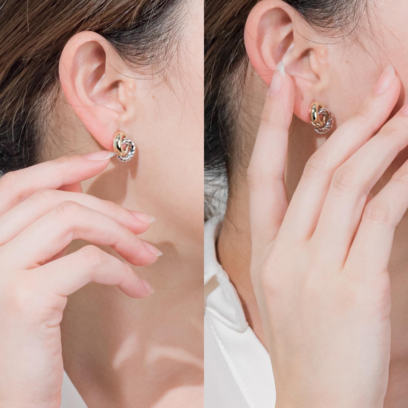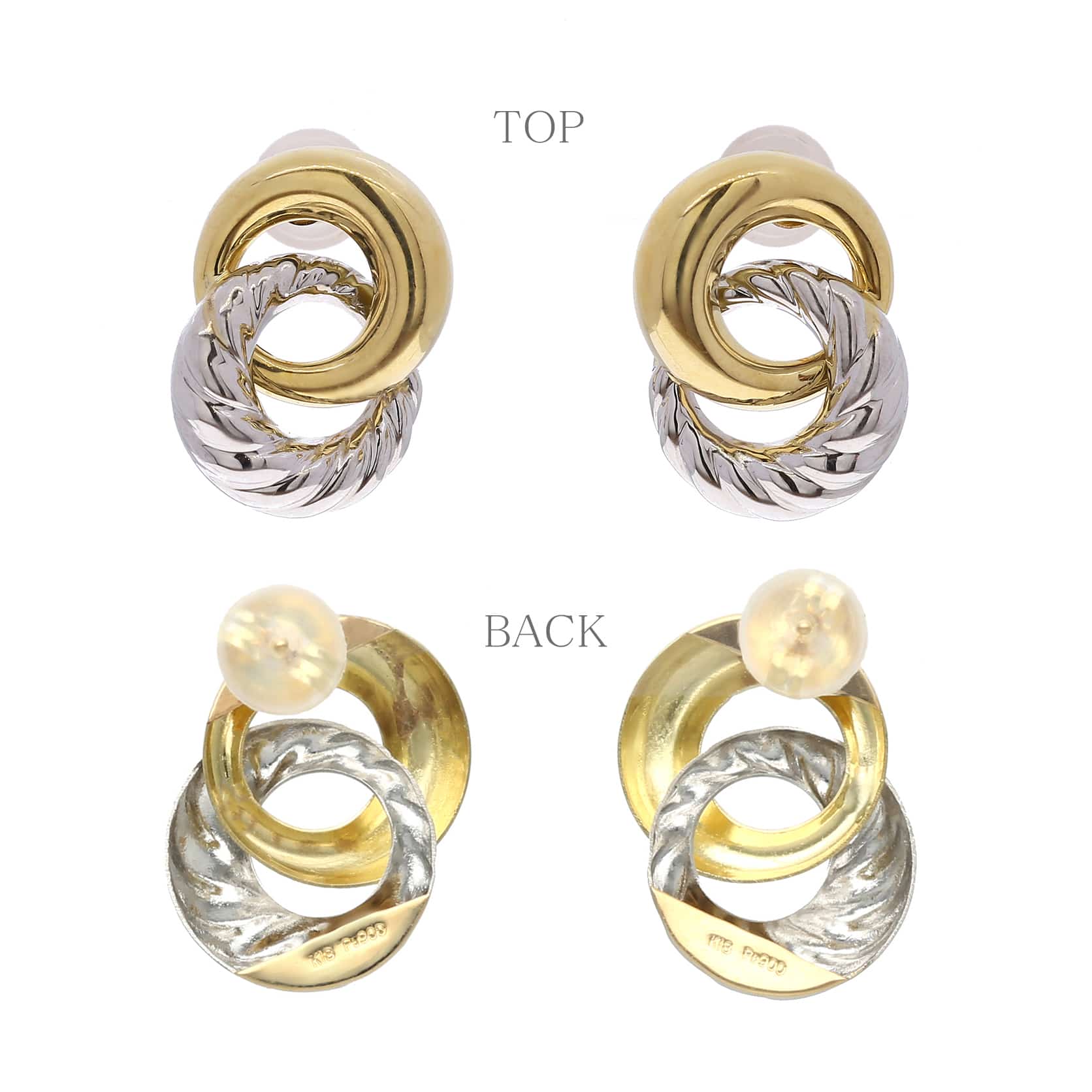 K18イエローゴールドとプラチナのコンビピアス。 イエローゴールドとプラチナが存在感のあるデザインです。 2色のコントラストが美しく耳元を華やかに彩ります。