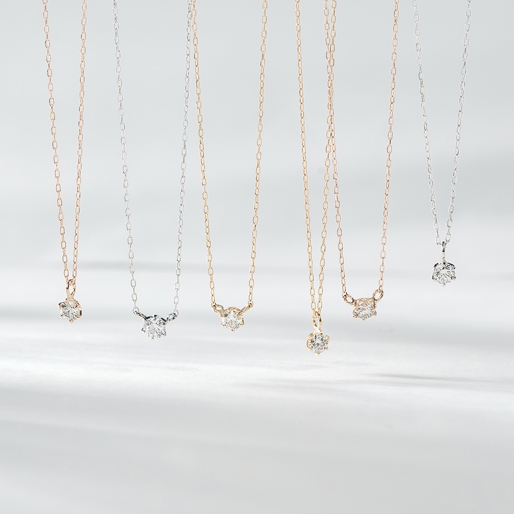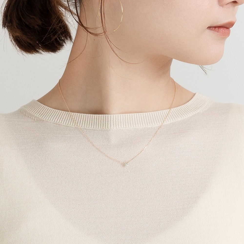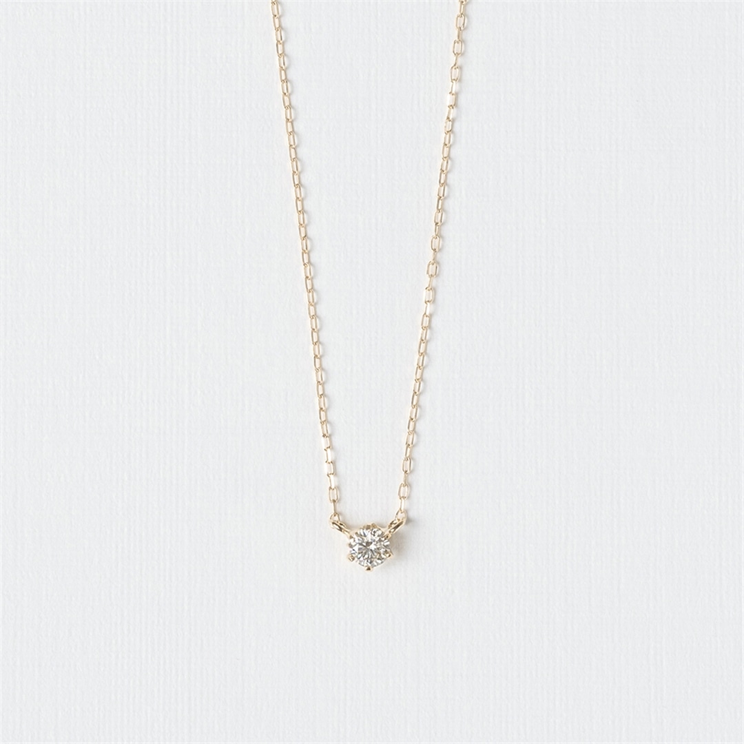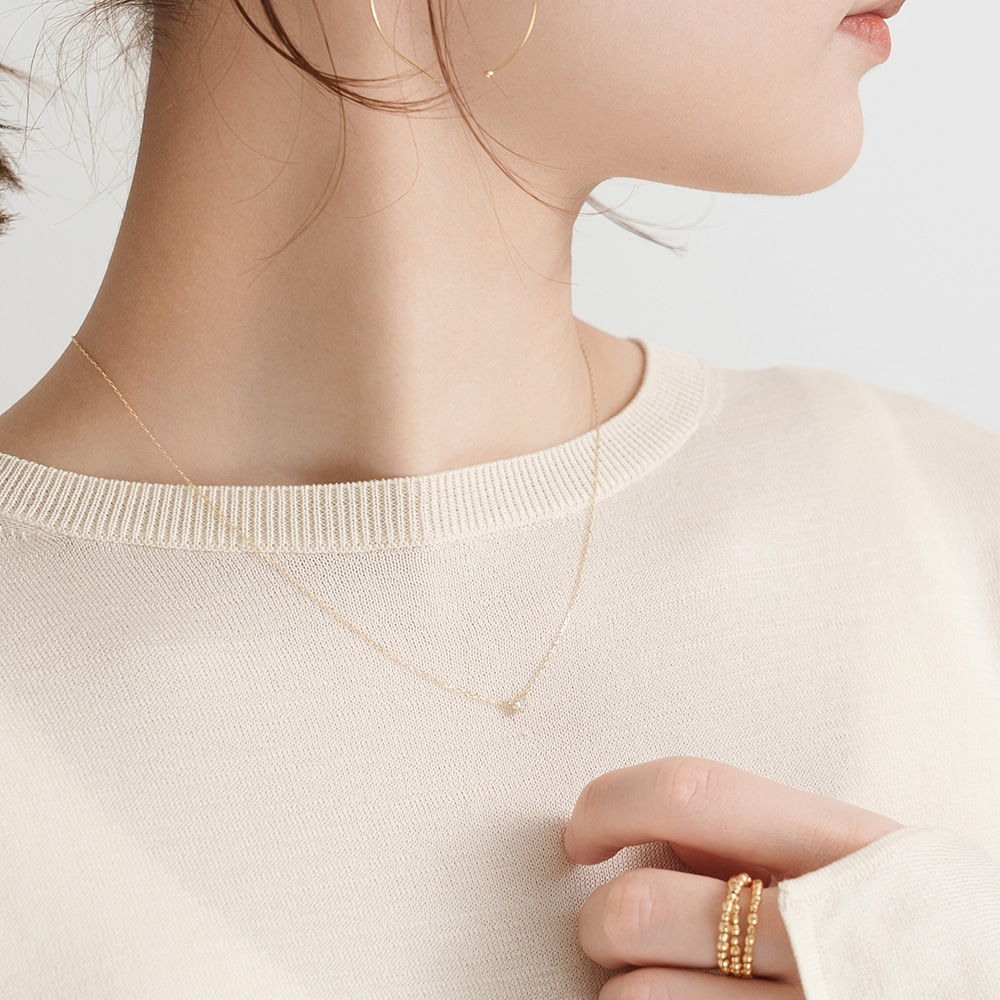 18金ゴールドと0.1ctの一粒ダイヤモンドの輝きを最大限に生かすよう、無駄のない極めてシンプルなデザインに。 まるでダイヤモンドがそのまま肌に溶け込むかのように馴染み、デコルテからあなたの華やかさを引き出します。 「永遠の絆」や「純愛」を象徴するダイヤモンドは、そんなシーンにも合わせやすいので毎日身に着けるお守りジュエリーとしてもおすすめ。 シーンや年代を問わず着けられるデザインなので、プレゼントギフトにもぴったりです。