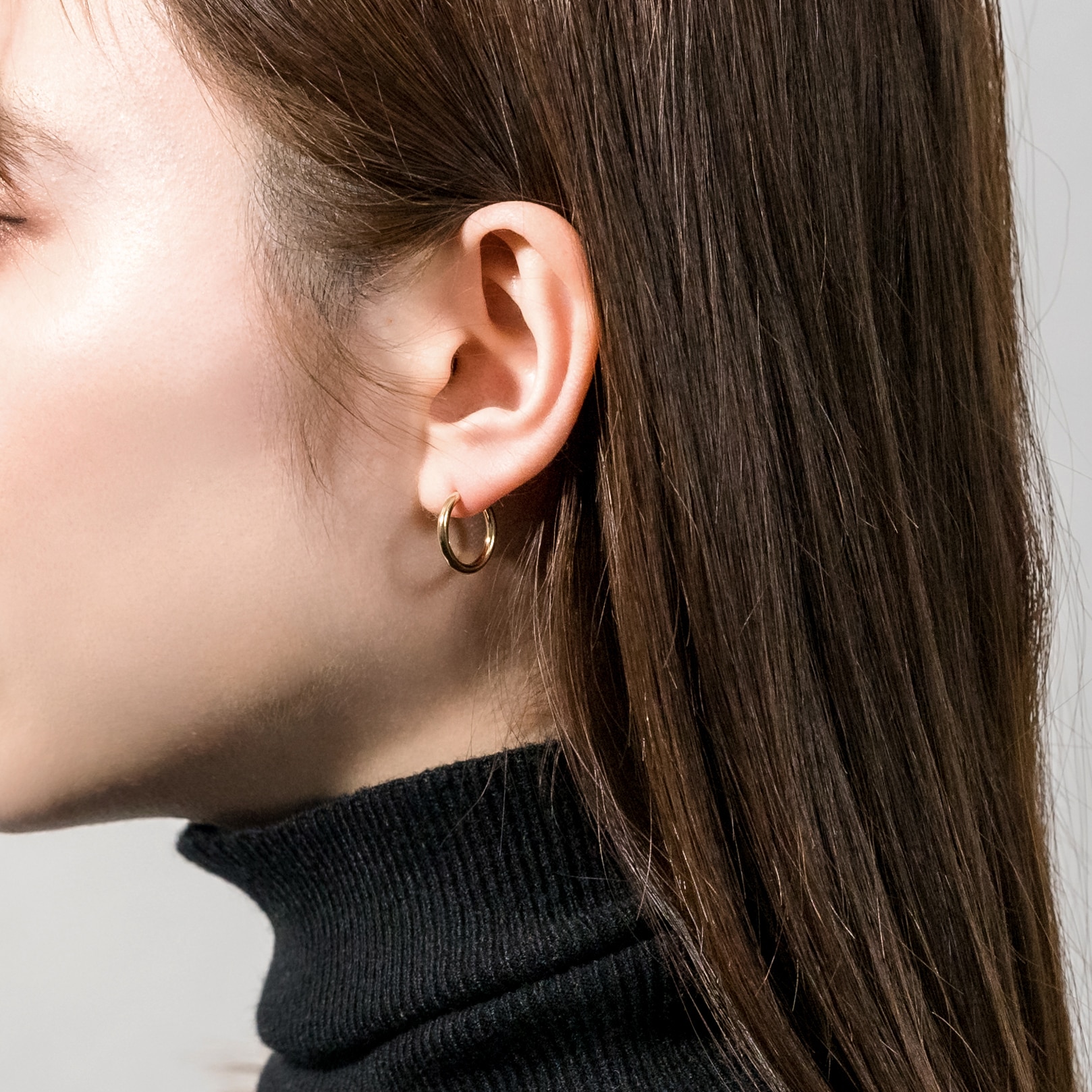 素材はK18イエローゴールド。太さ『2.0mm』としっかりとしたボリュームのあるラインに、『1.5㎝×1.5㎝』の小さめのサイズ感。 ポストだけではなく、フープ部分のパイプを含め全体がK18となっているため、上品な艶と奥行きのある色味も魅力の一つ。 シンプルなユニセックスデザインなので、男女ともにお使いいただけるアイテムです。 どんなコーデにも、プラスオンで大人の上品さをまとった雰囲気に仕上がるとっておきのアイテムです。