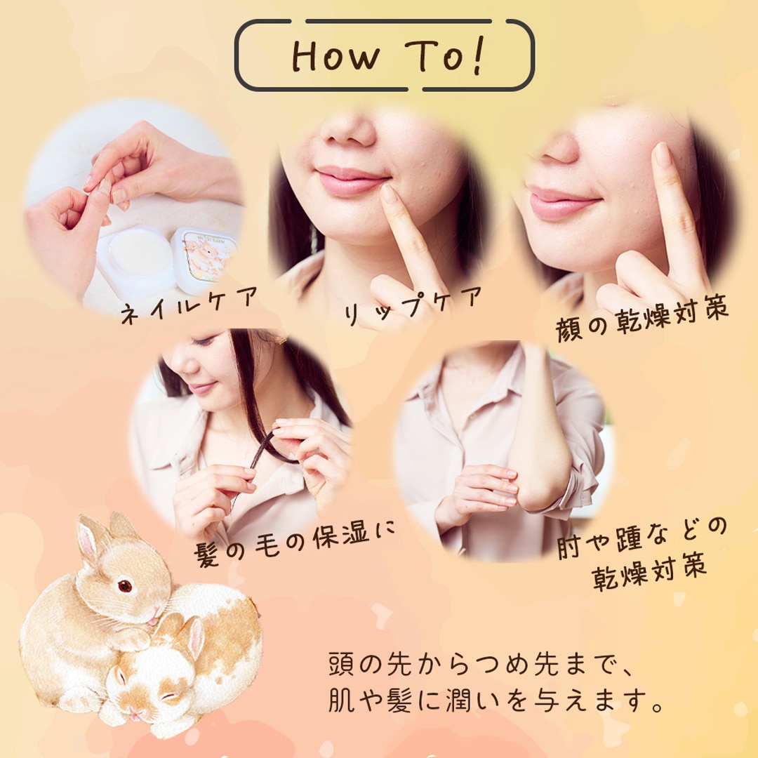 バーム 保湿 化粧品 乾燥対策 肌荒れ ノンシリコン 無香料 天然由来成分 ペットと暮らす うさぎと暮らす 犬 猫 うさぎ 飼育者向けギフト 贈り物 うさぎグッズ