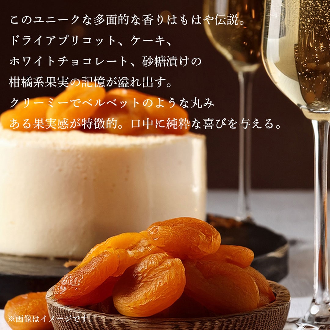 このユニークな多面的な香りはもはや伝説。ドライアプリコット、ケーキ、ホワイトチョコレート、砂糖漬けの柑橘系果実の記憶が溢れ出す。