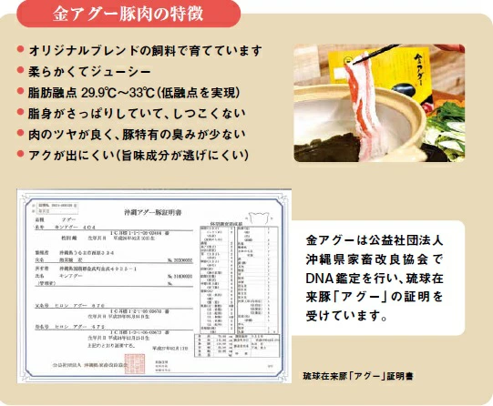 肉質はキメ細やかでしっとりとツヤがあり脂身は甘みがあり、なんと脂肪融点29.9℃(脂身が溶ける温度)と国内一般豚平均より低く口の中でサラリと溶けます。