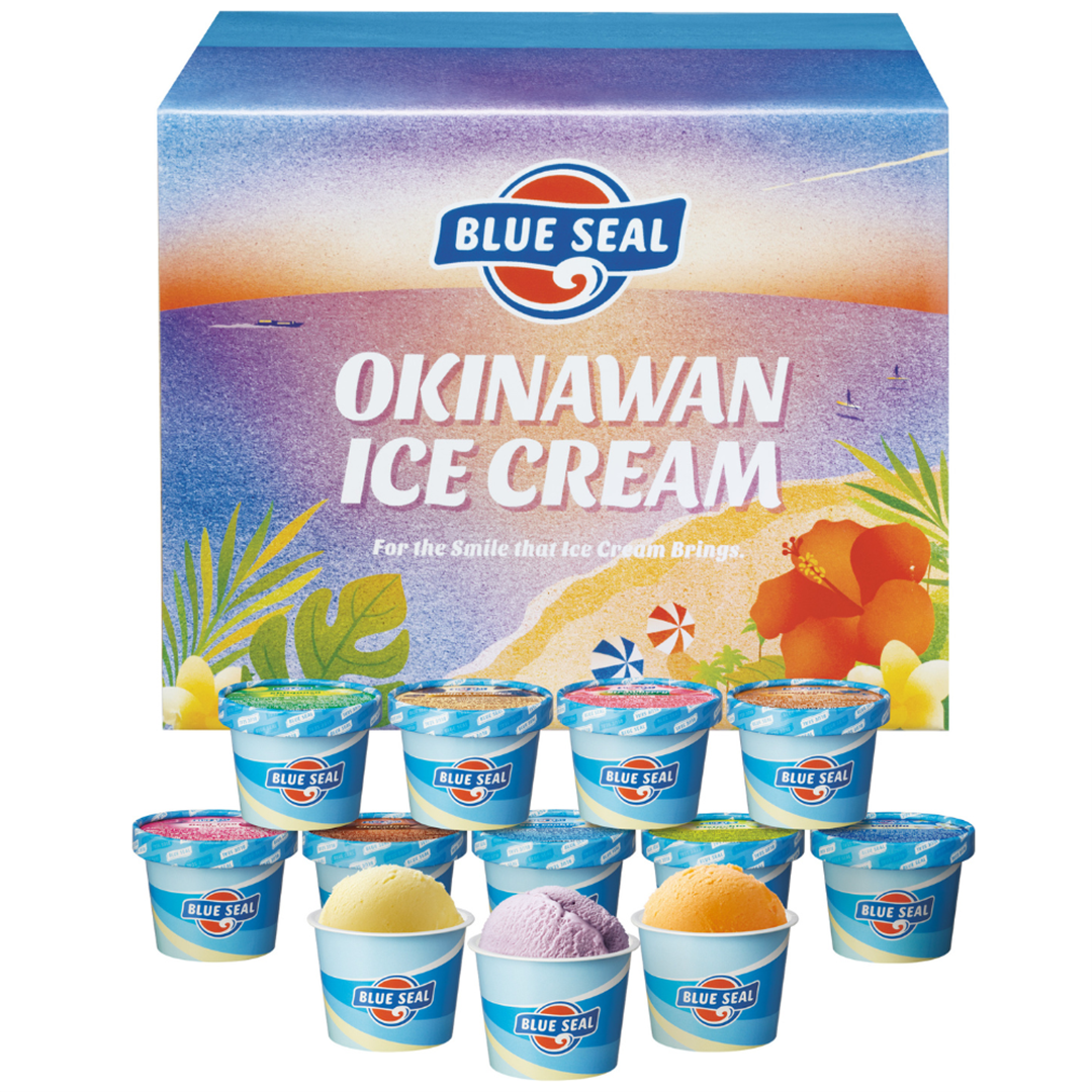 ブルーシール定番ギフト商品に直営で人気のOKINAWANフレーバーとアメリカンフレーバーを詰め合わせたギフトセット商品。各1個入り。贈り物や贈答品に最適です。