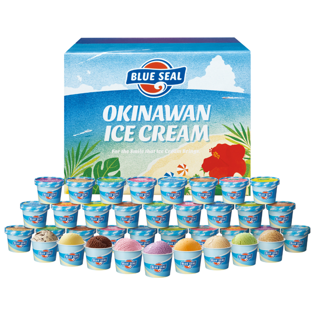 ブルーシール定番ギフト商品に直営で人気のOKINAWANフレーバーとアメリカンフレーバーを詰め合わせたギフトセット商品。