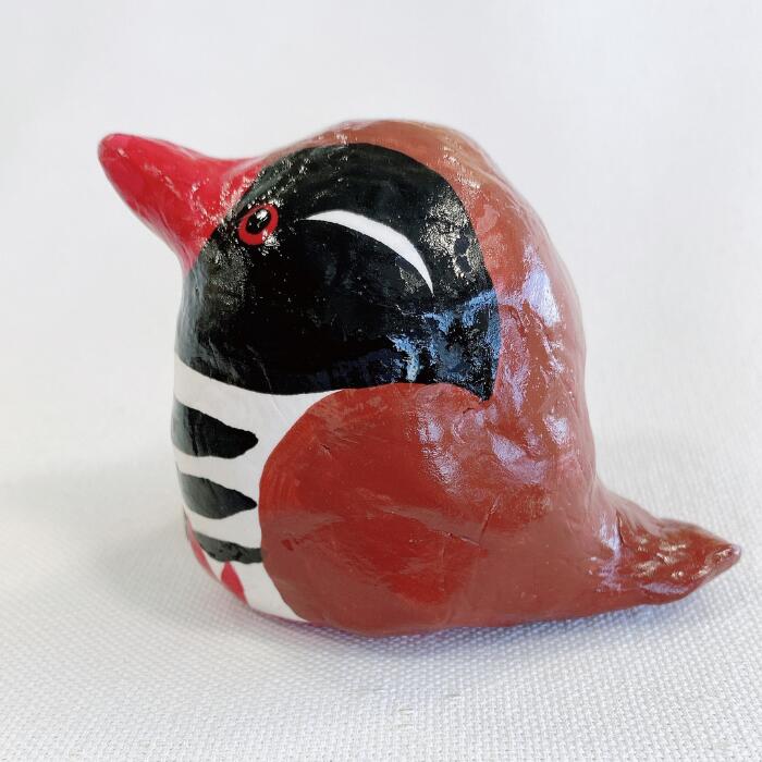 ヤンバルクイナは、くちばしと足は赤、胸からお腹は白と黒のしましま模様です。 そのヤンバルクイナを、かつて沖縄にあった玩具 琉球土人形をモチーフに「琉球かふう人形」にしました。