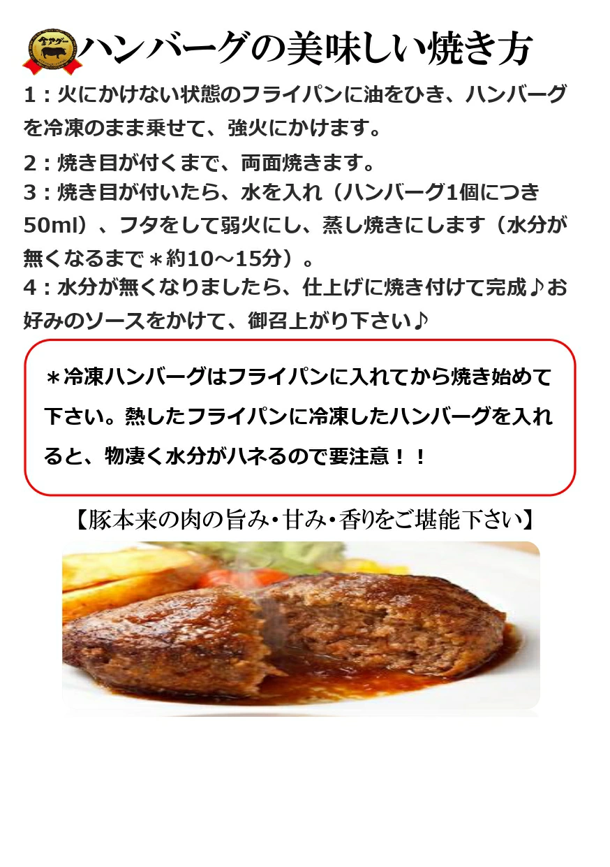 | 内容量 | ハンバーグ×2個、ソーセージ×12本、餃子×12個 |