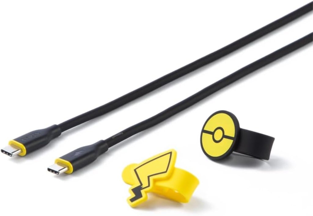 絡みにくいUSB-C ケーブル ピカチュウモデル:やわらかく絡みにくいUSB-C ケーブル。製品だけでなく、製品パッケージもポケモンデザインにしたスペシャルなセットです。オリジナルケーブルバンド付属:モンスターボールとピカチュウのしっぽのデザインを施したケーブルバンド付属。ケーブルを束ねてバッグやポーチに収納が可能です。絡まずストレスフリー:外装にシリコン素材を使用。巻いたりまとめたりしても癖がつきにくく、絡みにくいため、ストレスなくご使用できます。優れた耐久性:約25000回の折り曲げにも耐える、優れた耐久性を実現。ケーブル内部のワイヤーを断線から保護し、安心して充電することができます。MacBook Proにも急速充電可能:最大出力100Wの高出力に対応し、スマホからノートPCまで幅広い機器に急速充電が可能です(100W出力以上のUSB PD対応充電器(別売り)使用時のみ)。