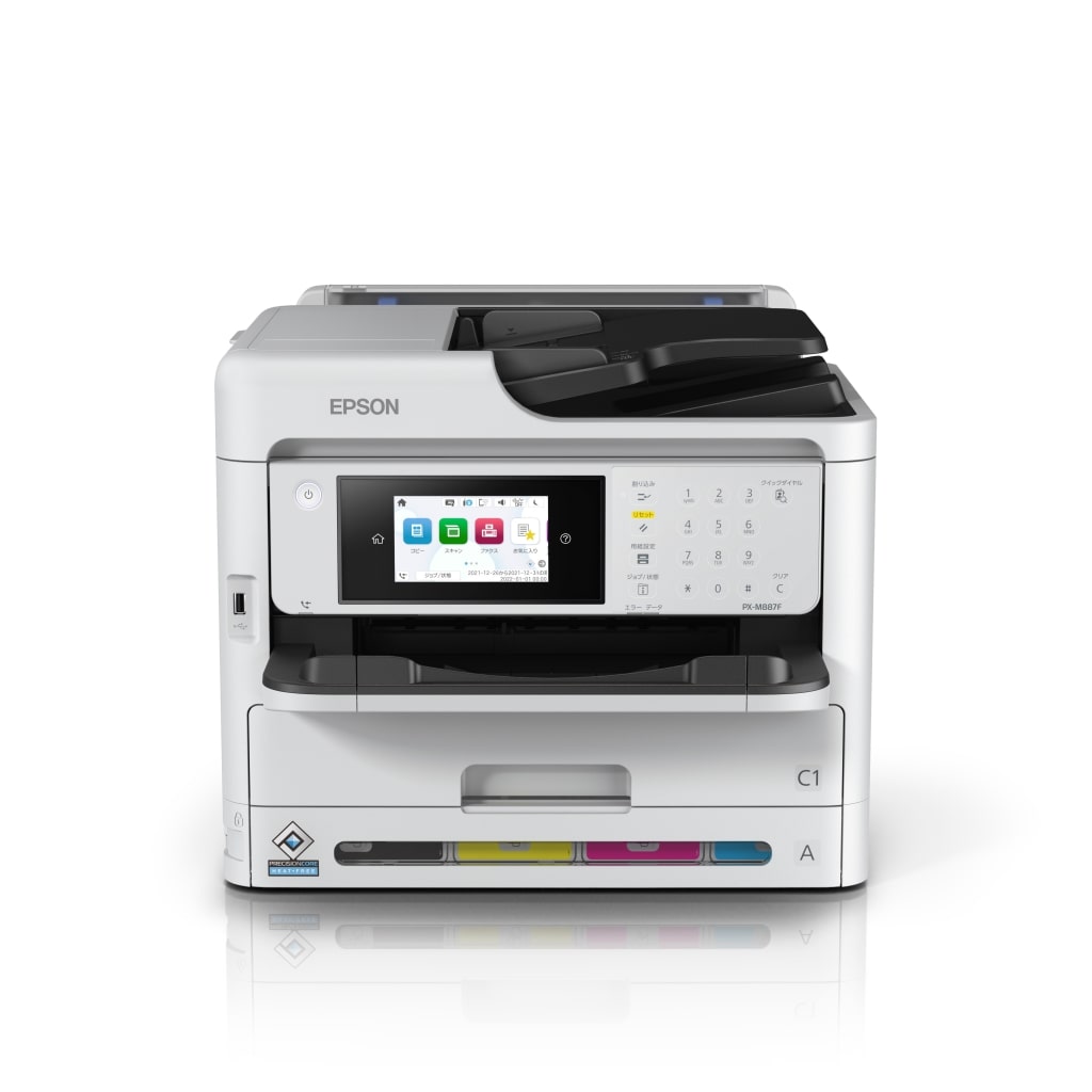 エプソン ビジネスインクジェット複合機 PX-M887F(4色独立インクタンク/4.3型CTP/H-USB/LAN/W-LAN/自動両面/ADF/FAX/A4) PX-M887F