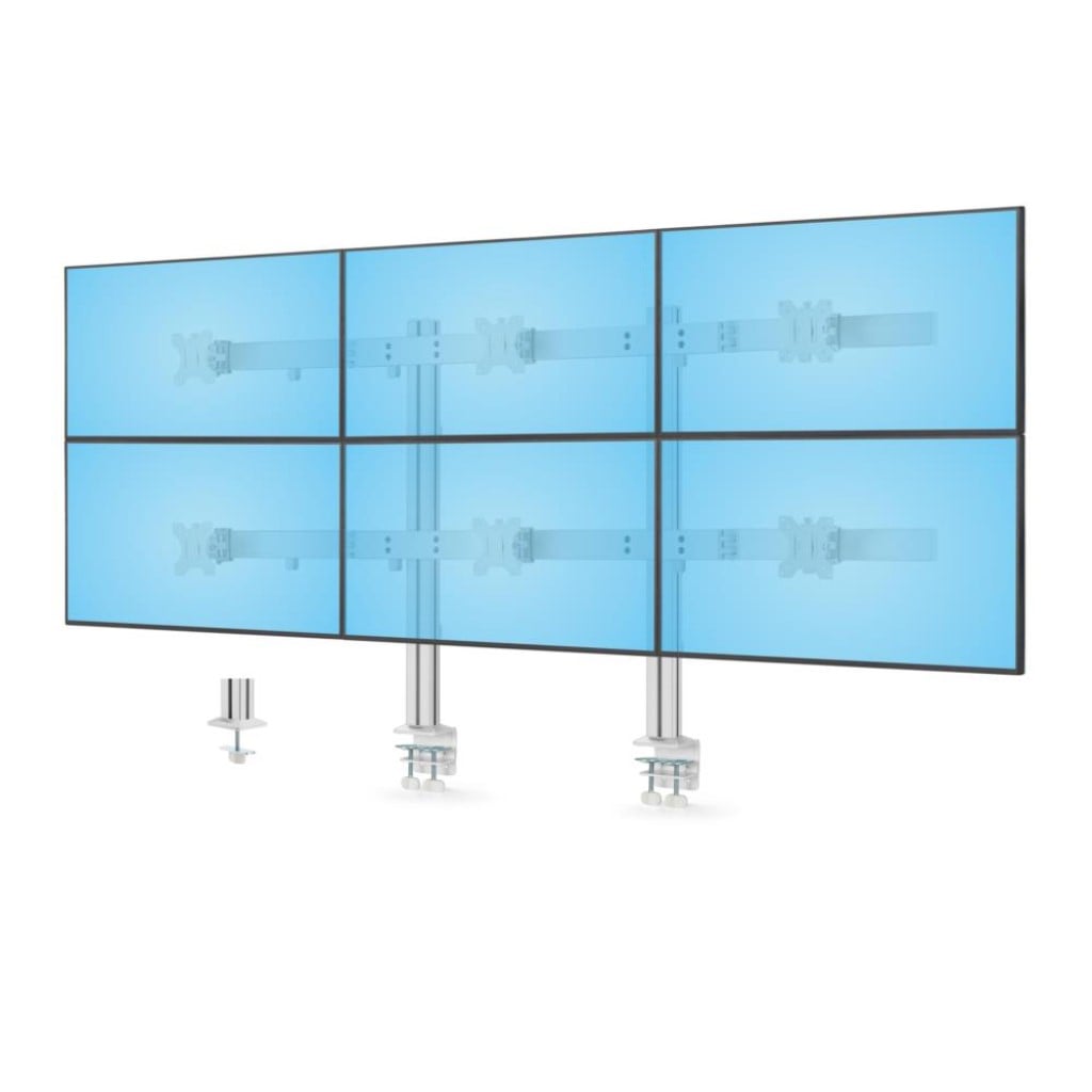 6画面対応デスクトップ用モニターアーム。エルゴノミクス設計により、最大6台の32インチディスプレイに対応します。ワイドな表示領域を確保し、作業効率改善に役立つマルチモニター環境を実現します。<高い安定性を提供するクロスバータイプ>デュアルコラム設計、頑丈なアルミニウム構造、さらに強化されたC型クランプベースにより、長期にわたって安定性が確保されます。この設計により、時間が経っても傾くことなく、デスク全体に均等に重量を分散させ、高い信頼性を備えた作業環境を実現します。<3画面を上下2段 6画面構成>このモニターセットアップは、データ解析や監視業務などに理想的な構成です。金融分析、セキュリティ監視、コントロールルームなど、広い表示領域を必要とするさまざまな作業に対応します。個々の微調整機能により、各モニターの正確な位置合わせが可能です。<ディスプレイの調整>エルゴノミクス設計のVESAプレートは、左右振り±17度、上下振り±34度、360度の画面回転に対応(縦向き/横向き切り替え可能)、また75x75/100のVESAパターンに対応しています。各ディスプレイマウントの耐荷重は最大8kgです。すべてのモニターは、71.1インチ(1.8m)の幅のクロスバーに沿って自由に配置が可能です。<便利な設置>このディスプレイアームは、2種類の取り付け方法に対応しています。頑丈なCクランプは、厚さ1-7.5cmのデスク天板に適合し、グロメット穴マウントは、厚さ1-4.5cmのデスク天板に対応します。<すっきりとした作業スペース>整理された作業環境を維持するために、クロスバーとカラム用のケーブルクリップが付属しており、ケーブルをきれいにまとめて収納できます。