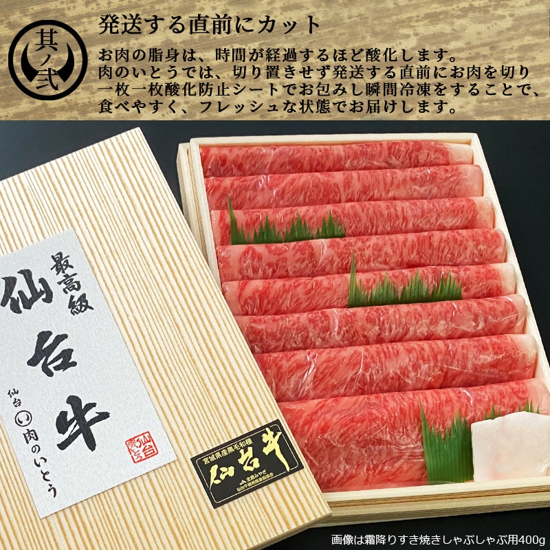 | 商品名 | 仙台牛霜降り薄切りすき焼きしゃぶしゃぶ用 |