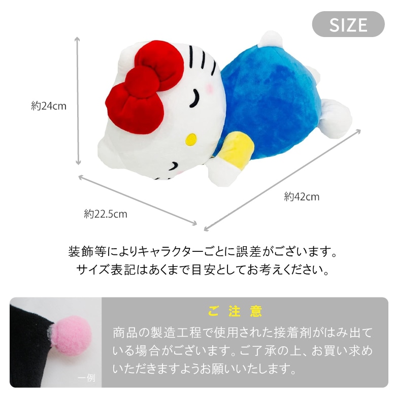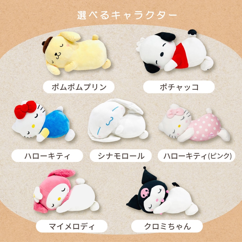 子供から大人までみんなが笑顔に! お誕生日や大切な方への贈り物、自分へのご褒美に。 [特長] ・愛くるしい表情は、細部までこだわった刺繍で表現。 ・マイクロファイバーのもちもち滑らかな肌触りで添い寝にぴったり。 ・お部屋のアクセントやインテリアグッズ、車内のマスコットとしても活躍。 ・誕生日やクリスマスのギフトにもぴったり。 [バリエーション] ・ハローキティ(ピンク) ・ハローキティ(ブルー) ・マイメロディ ・クロミ ・ポチャッコ ・ポムポムプリン ・シナモンロール [素材] ・側生地/ポリエステル100%(マイクロファイバー) ・詰め物/ポリエステル100% [サイズ] ・ハローキティ(ピンク) (約)長さ48 x 幅20 x 高さ20 cm ・ハローキティ(ブルー) (約)長さ45 x 幅30 x 高さ30 cm ・マイメロディ (約)長さ50 x 幅15 x 高さ23 cm ・クロミ: (約)長さ54 x 幅15 x 高さ35 cm ・ポチャッコ: (約)長さ40 x 幅14 x 高さ20 cm ・ポムポムプリン: (約)長さ40 x 幅16 x 高さ23 cm ・シナモンロール: (約)長さ40 x 幅14 x 高さ24 cm