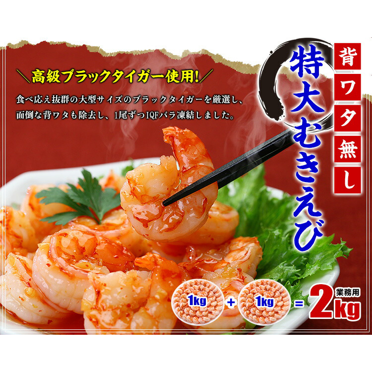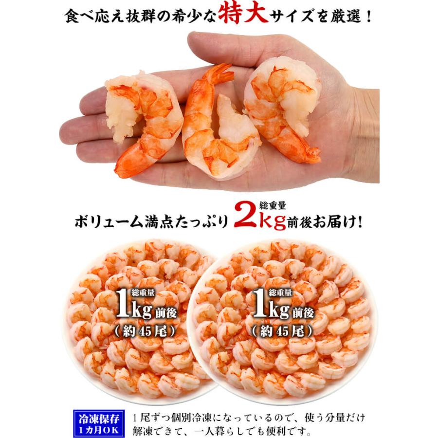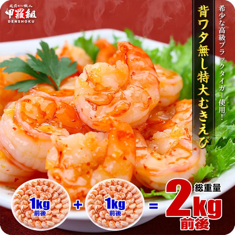 【背ワタなし】特大むきえび2kg前後(約1kg 45尾前後/解凍後800g前後×2袋) 海老 むきえび ムキエビ えび エビ 冷凍食品 甲羅組
