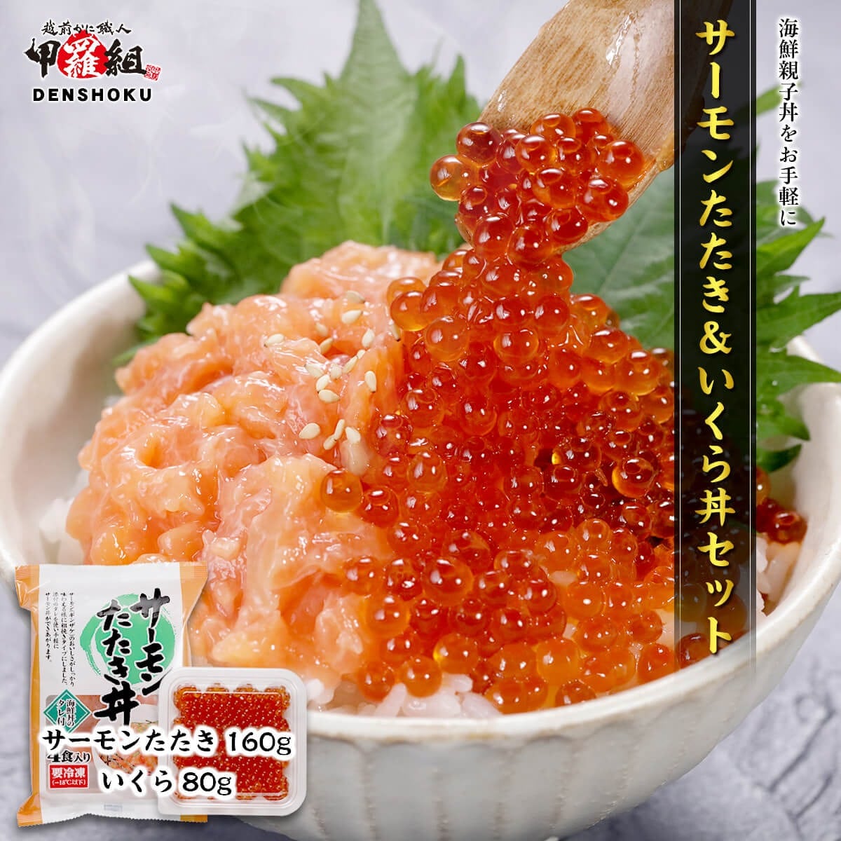 サーモン イクラ いくら サーモンたたき&いくら丼セット 特製タレ付 親子丼 海鮮丼 鮭 さけ イクラ 刺身 グルメ 冷凍 サラダ 寿司 ちらし寿司 タレ 甲羅組