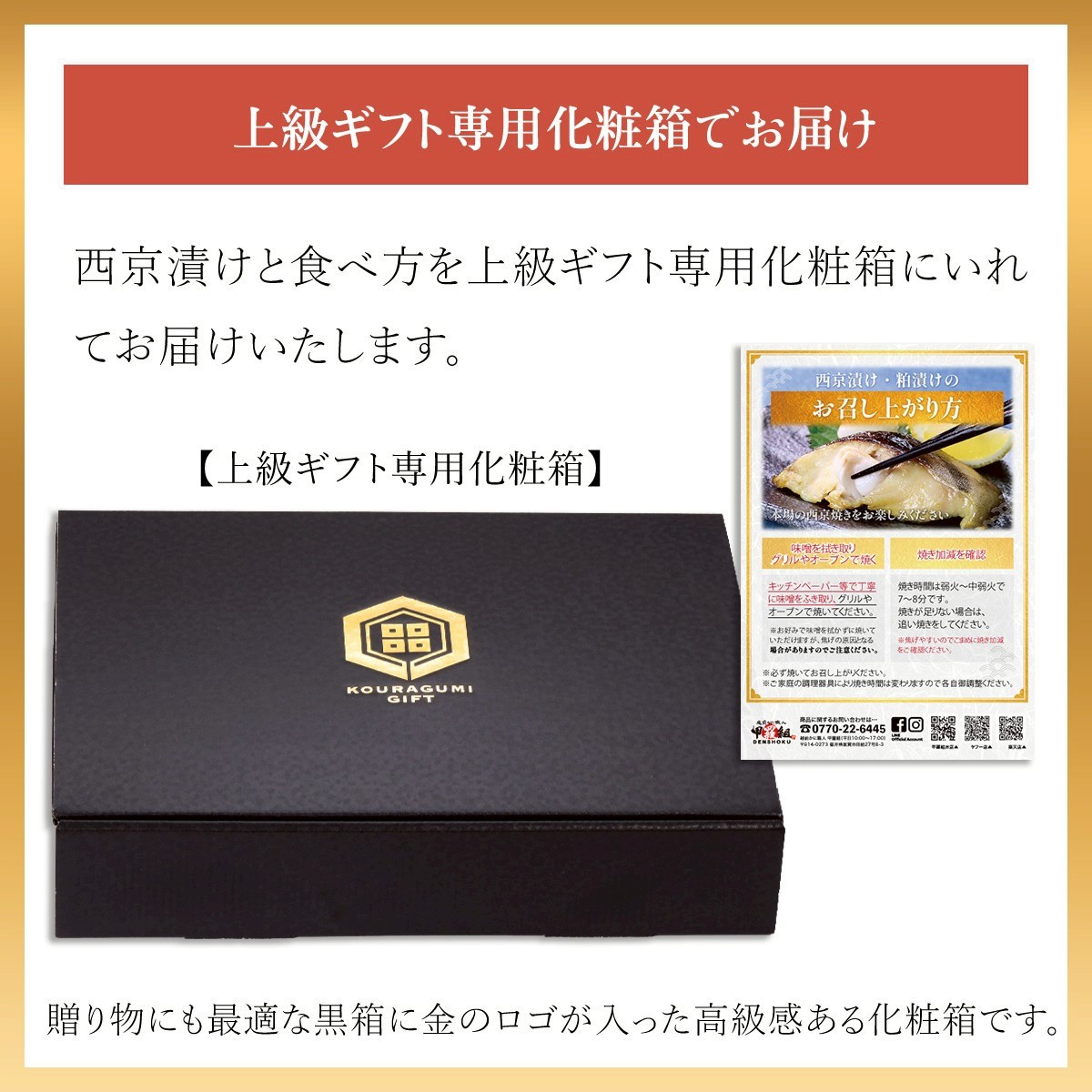 ◎高級銀ダラやサワラなどが入った本格西京漬け&粕漬けセット! ◎本場京都の西京味噌を使用し、じっくり72時間漬け込みます! ◎しっとり柔らかく、繊細で上品な味わいは高級料亭の味! ◎1切れずつ個包装なので、ご自宅用はもちろんギフトにもお薦め! ◎ご飯のお伴、酒の肴、お茶漬けやおにぎりの具、お弁当に♪ 焼き上がる芳醇な香り…。旨みを何倍にも引き出す複雑で深い味わいは、まさに大人の美食。脂のり抜群の漬魚の王道「銀ダラ」をはじめ、しっとり柔らか上品な甘みが特徴の「金目鯛」、そして定番の「サワラ」や「サケ」など、鮮度の良い上質な切身を厳選した豪華な西京漬けセットです。使用する味噌は、本場京都の西京味噌。塩分を少なく上品な味で丹精込めて漬け込みました。焼きたてを温かいご飯と一緒に食べると、まるで高級料亭のような贅沢な気分を味わえます。また、冷て柔らかく美味しいのでメイン料理の他にも、おにぎりやお茶漬けの具、お弁当にもお薦めです。1切れずつ個包装になっており、食べ方の説明書も同封いたしますので、ご自宅用はもちろんギフトにも安心してご利用下さいませ。