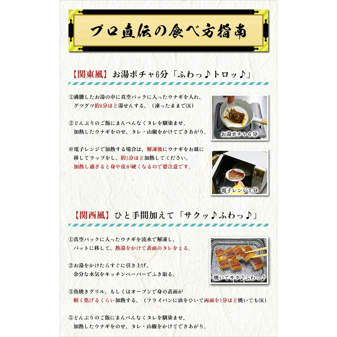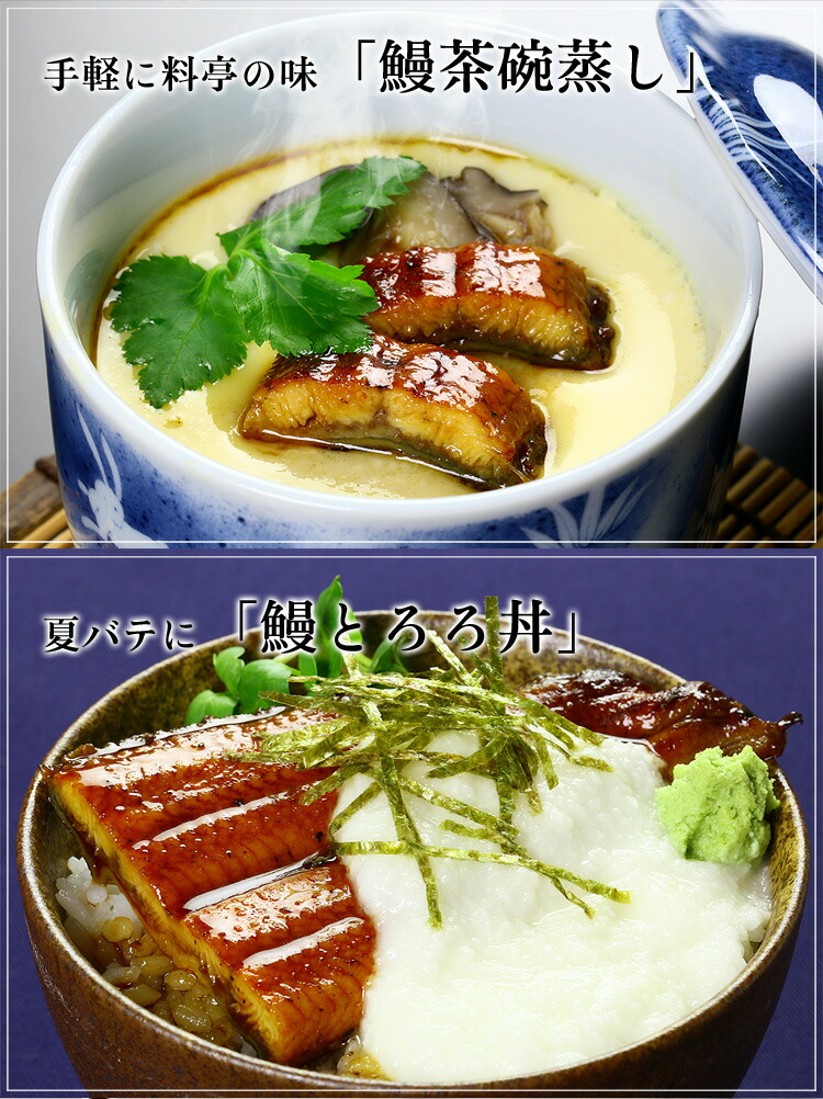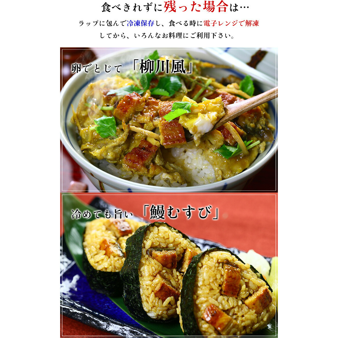 冷凍庫からウナギを取り出し流水で解凍し、湯せんで5分温めるか、お皿に移してラップをして電子レンジで1~2分ほど温めてお召し上がり下さい。