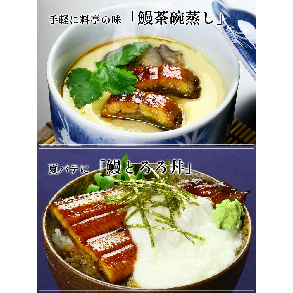 冷凍庫からウナギを取り出し流水で解凍し、湯せんで5分温めるか、お皿に移してラップをして電子レンジで1~2分ほど温めてお召し上がり下さい。 |