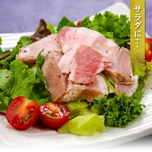 | ◎鹿児島県の「南州ナチュラルポーク」使用 ◎柔らかい肉質とクセのない味わい ◎低温でじっくり加熱し旨味を凝縮 ◎生産から販売まで一貫管理 ◎HACCP認証工場で安心・安全 ◎サンド、サラダ、丼などアレンジいろいろ♪ 鹿児島県産「南州ナチュラルポーク」のロース肉を使用したローストポーク。 照葉樹の原生林から湧き出る豊かな水で育った豚は、ストレスが少なく、柔らかな肉質とクセのない味わいが特長です。 飼料には動物性原料を一切使わず、植物性の飼料のみを与えることで、後味はさっぱりと、風味豊かに仕上がっています。 HACCP認証の工場にて、生産から処理・加工まで一貫して管理。 さらに低温でじっくり加熱することで、豚肉本来の旨味を閉じ込め、しっとりジューシーなローストポークに仕上げました。 そのままはもちろん、サンドイッチやサラダ、おつまみなど幅広くアレンジ可能。 シンプルだからこそ素材の良さが際立つ一品を、ぜひご堪能ください。 |