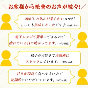 ◎しっとりやわらか カツ丼の具 電子レンジで簡単に調理できる、便利なカツ丼の具。冷凍のまま温めて、アツアツのご飯にのせるだけで、しっとり柔らかなカツ丼が手軽に楽しめます。 甘すぎない味付けで、子どもから大人まで幅広い世代に人気。家族みんなで美味しくお召し上がりいただけます。冷凍保存ができるので、冷凍庫にストックしておけば、忙しい日のごはんやおかずのもう一品、お弁当にもぴったり。真空パックで平たく密閉されているため、冷凍庫のスペースをとらず、省スペースで保存可能。仕送りにもおすすめの一品です。 |