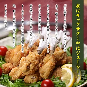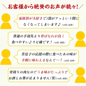 ★高校野球のメッカ甲子園球場がある、兵庫県西宮市のご当地グルメ! ★食べやすい手羽2ツ割スタイル♪ ★サクサクの衣と、あとを引くうまさの特性ニンニクタレが絶品! ★トースターで焼くだけの簡単調理♪ 甲子園ヒーロー揚げは鶏の手羽中唐揚げです。 かつて甲子園では、鶏(手羽)のからあげをメニューに取り入れている飲食店が多くありました。 「ヒーロー」という呼び方も昔からあるもので、中国や台湾から伝わった「ジーロウ」=鶏肉(の唐揚げ)、からきているという説などがあります。 そんな「甲子園ヒーロー揚げ」は大人から子供まで、誰もがヤミツキになる、あとをひく旨さの特性のニンニクダレとサクサクの衣が特徴です。 骨を持って片手で食べられる上に、トースターで焼くだけの簡単調理である為、日々の食卓の一品やお弁当にもピッタリな一品です。 とっても美味しくて使いやすい、西宮のソウルフード「甲子園ヒーロー揚げ」をぜひご賞味ください。 |