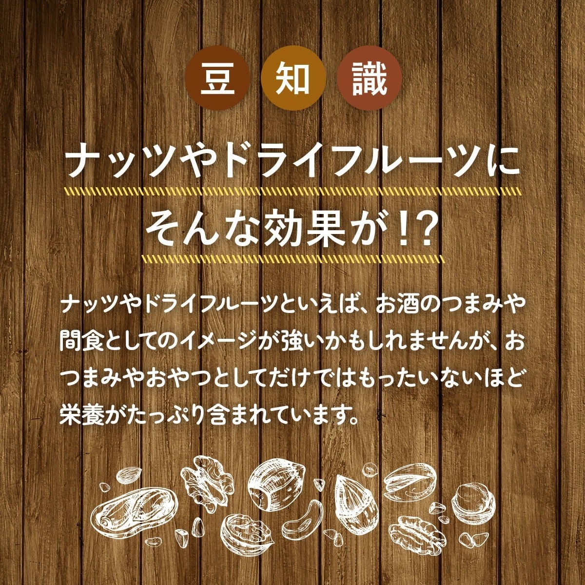 ナッツ&ドライフルーツといえば、お酒のつまみというイメージが強いかもしれませんが、おつまみとしてだけではもったいないほど、栄養がたっぷり含まれています。たとえばアーモンドのビタミンEは、かぼちゃの約5倍含まれているほか、食物繊維はキャベツの約5倍も!さらに「美容の油」とも呼ばれるオメガ3脂肪酸も豊富で、驚くほど栄養価が高いのです。お子様のおやつとして、旦那様のおつまみとして、奥様の料理のアクセントとして、天然のサプリメントとも呼ばれるナッツを、普段の食事に取り入れてみましょう。家庭で活躍する機会が増えれば、家族の健康や美容の助けになることは間違いありません。