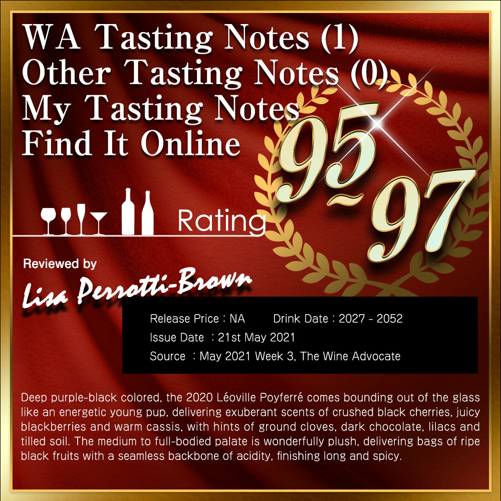 ミシェル・ローランの協力を仰いで、醸造担当者が造り出すワインは、たとえ瓶詰め前に出回るサンプルが目覚しい出来でなくとも、近隣の偉大なワインと比較される。テロワールは、深い色調や豊満でゆったりとした酒肉、サン・ジュリアンというよりは、ほとんどポイヤックに近い、スパイシーな広がりのあるブーケ、そして長熟性をレオヴィル ポワフェレにもたらしている」と大絶賛!