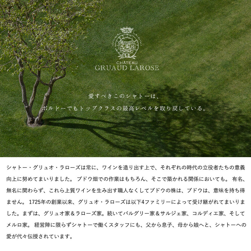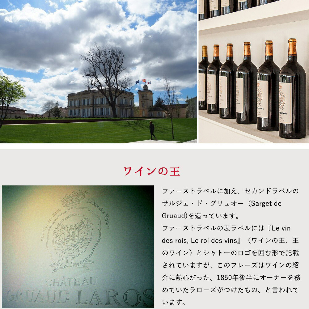 格付第一級に次ぐ、メドック格付第二級!(エチケットに堂々と「王のワイン、ワインの王」と記されているとおり、1855年の格付け当時、第一級シャトーに次いで取引価格が高かったと言われるグリュオ・ラローズ。