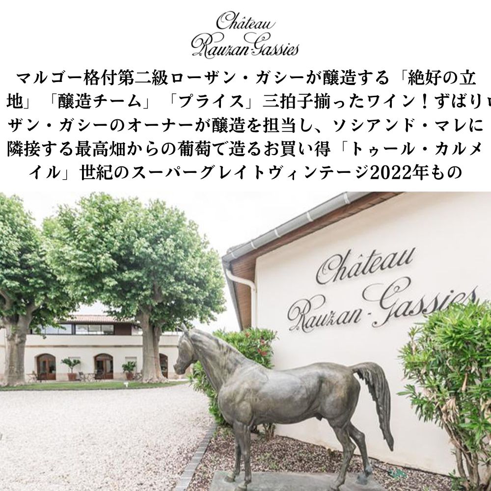 味わいはメルロー由来の丸みのあるタンニンと旨味がマルゴーの格付けシャトーの系譜が感じられます!マルゴー格付第二級が醸造する「絶好の立地」「醸造チーム」「価格」三拍子そろった高級オー・メドックのスーパーグレートヴィンテージ[2022]年が限定で少量入荷!