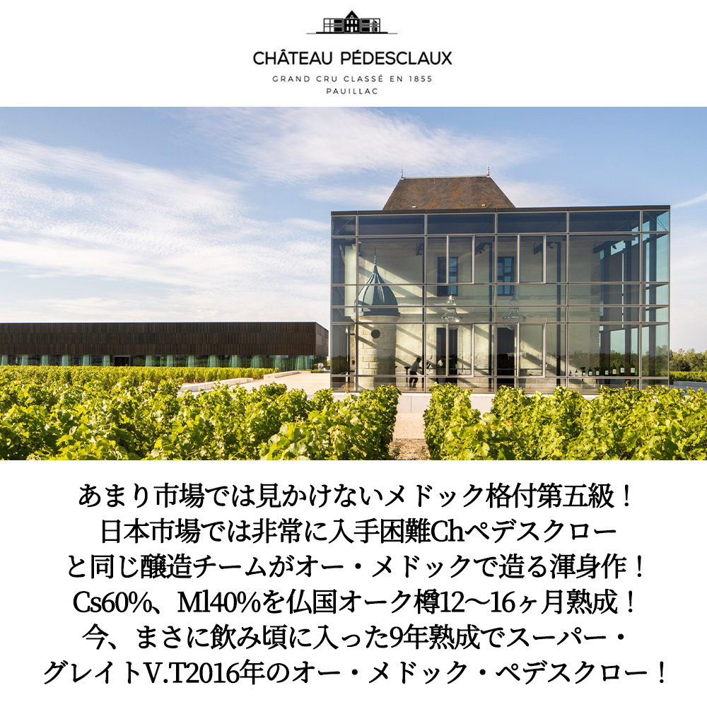 骨格も整い高級感漂う究極オー・メドック・ペデスクローが今、まさに飲み頃に入った9年熟成でスーパーグレイトヴィンテージ[2016]年もので限定で少量入荷!