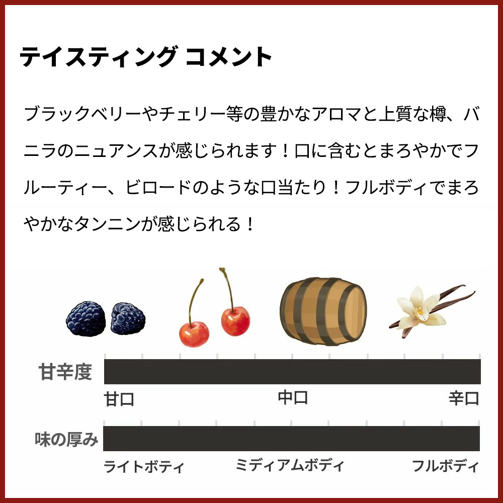 ブラックベリーやチェリー等の豊かなアロマと上質な樽、バニラのニュアンスが感じられます!口に含むとまろやかでフルーティー、ビロードのような口当たり!フルボディでまろやかなタンニンが感じられる究極ポイヤック限定で少量入荷!