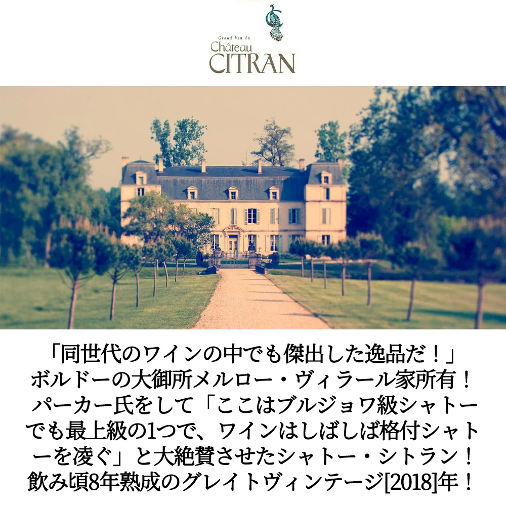 熟した果実味に、十分なタンニンによるコクがありながら、しなやかな舌触りが楽しめる素晴らしいバランスの高級オー・メドック“シトラン”がグレイトヴィンテージ[2018]年もので限定で少量入荷!