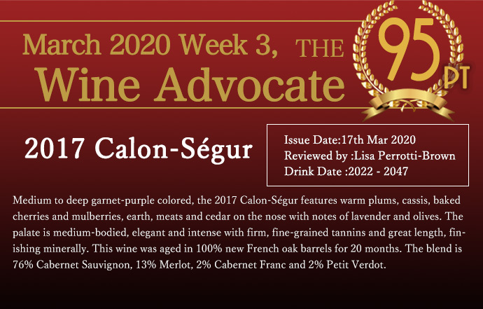 ル・クラスマン誌は5大シャトーに次ぐ、★★ダブルスター評価で「3タイプのテロワールはメドックのそれぞれの品種に成功の可能性とアロマに驚くべき複雑さをもたらしている。1995年や1998年のような偉大なカロン・セギュールは最高にまろやかで最高に肉感的かつ、サン・テステフにおいて、一番繊細で一番長熟するワインとなる」と絶賛!