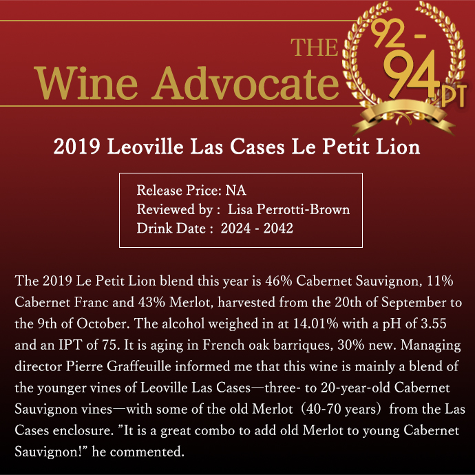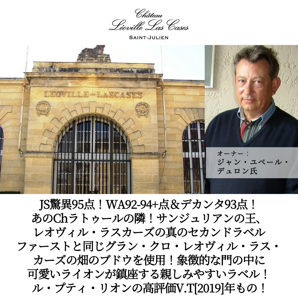ヒュー・ジョンソン氏には「他をひるませるほどの高い評判!不滅の構造をもつ」と言わしめた究極サン・ジュリアン格付超2級のレオヴィル・ラスカーズの2ndラベル“ル・プティ・リオン”!メルロー60%にカベルネ・ソーヴィニヨン40%!