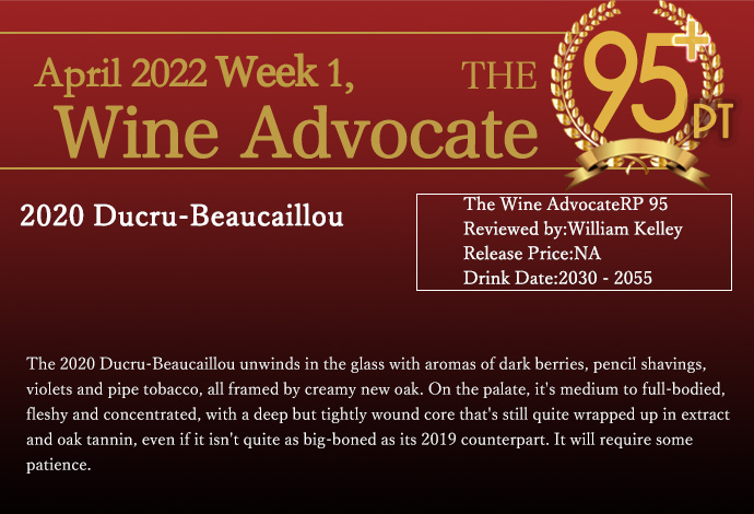 創立300周年を記念する特別ボトルであり、極少量が入荷している。このワインは、メドック公式格付第一級に迫るスーパー第二級の評価を受けており、カベルネ・ソーヴィニヨン81%とメルロ19%のブレンドで造られている。特に、この2020年のヴィンテージは、R.パーカー氏から満点5つ星の評価を受け、ジェブ・ダナック氏からは100点満点、ワインエンスージアスト誌から96-98点、ヴィノス誌からも96-98点、ジェームス・サックリング氏から97点の高評価を得ている。