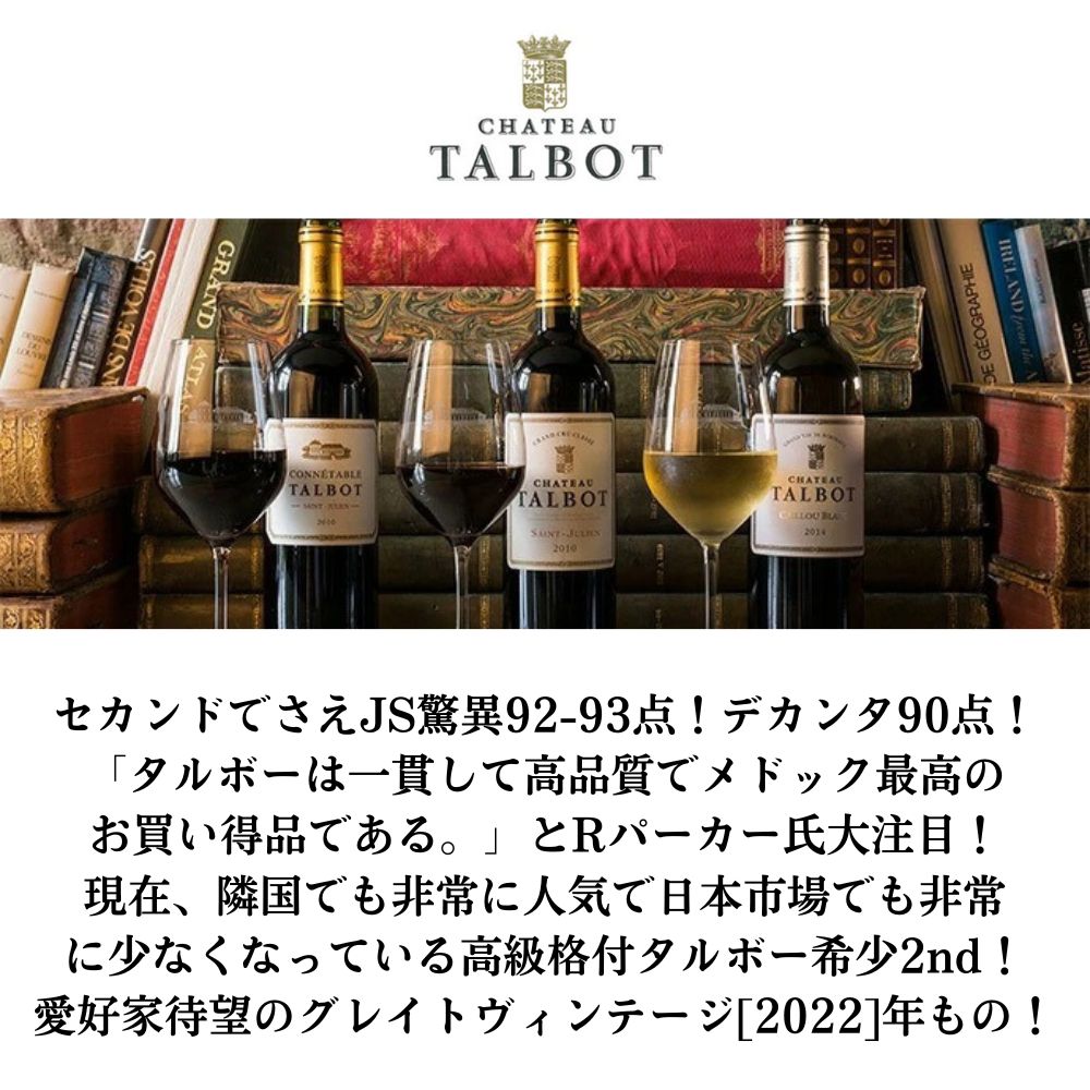 ロバート・パーカー氏に「タルボーは一貫して高品質でメドック最高のお買い得品である。」と言わしめた、メドック・グラン・クリュ・クラッセ第4級!シャトー・タルボーの2ndラベル!しかも超グレイトヴィンテージ[2022]年もの!