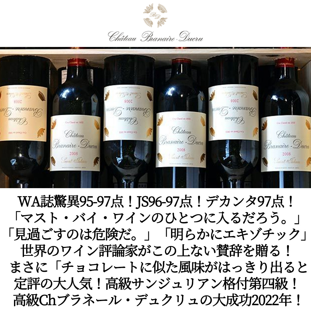 熱狂的なファンのいる大人気サンジュリアンの格付もののずばり1stラベルのシャトー・ブラネール・デュクリュ!しかも高評価で大成功のスーパーグレイトヴィンテージ[2022]年!