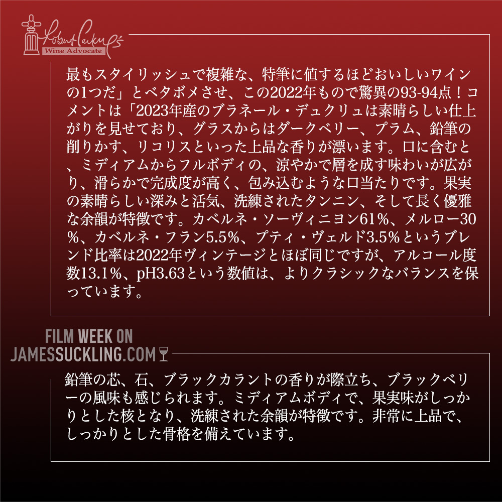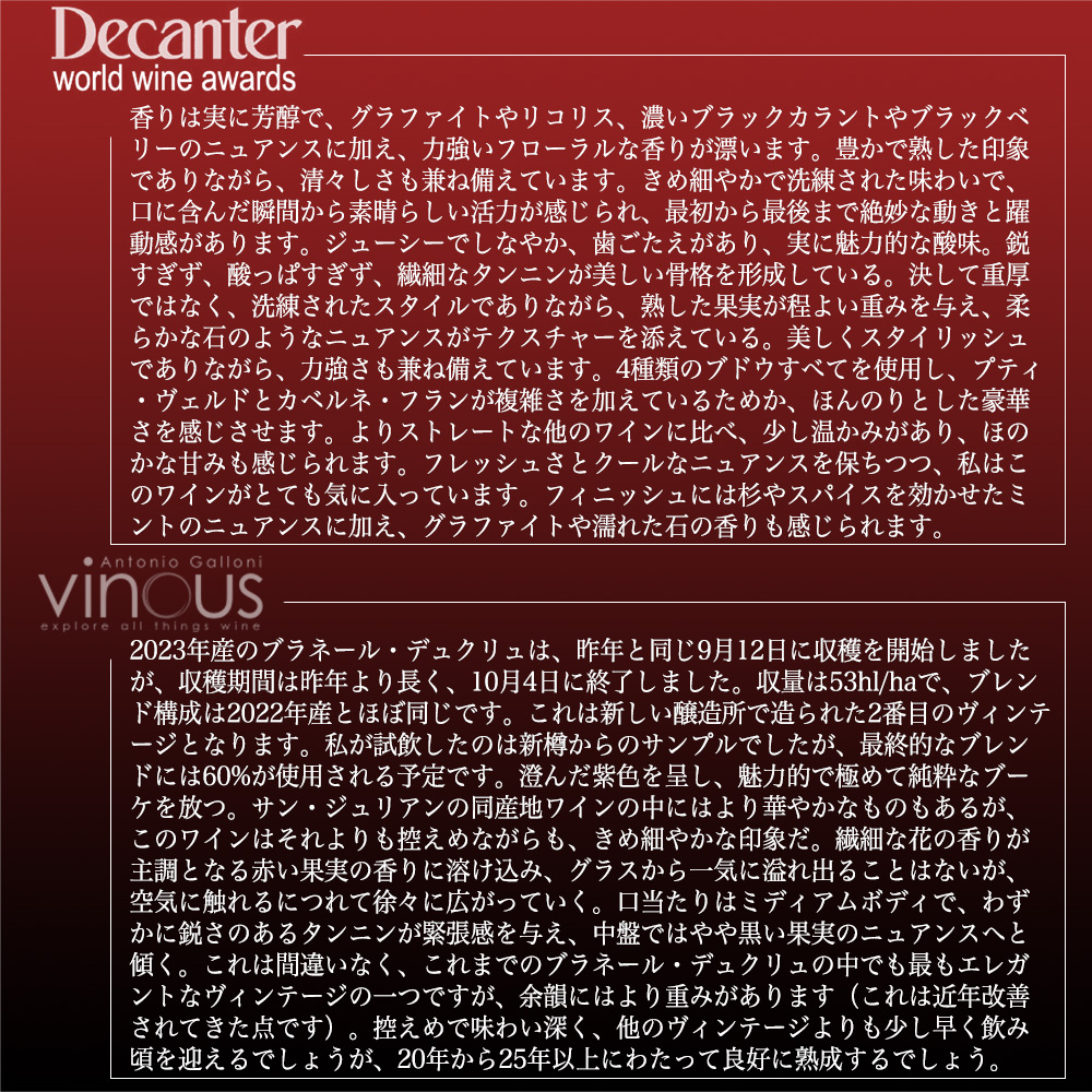 ブラインドテイスティングでも“チョコレートに似た風味がはっきり出る”と定評の大人気メドック格付第4級!ブラネール・デュクリュ!