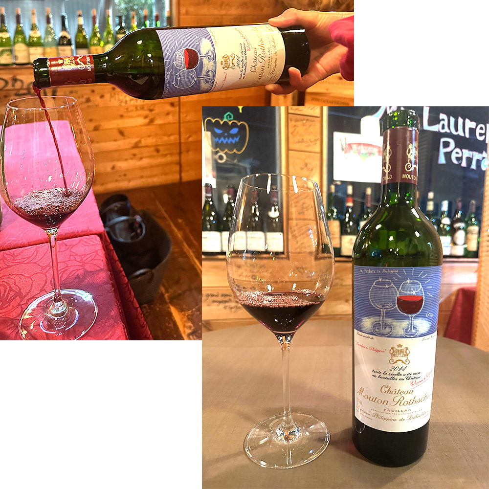 最高級ムートン・ロートシルトの[2014]年!しかもラベルは故フィリピーヌ夫人へのオマージュとして放物状に広がるペアグラスが描かれている!