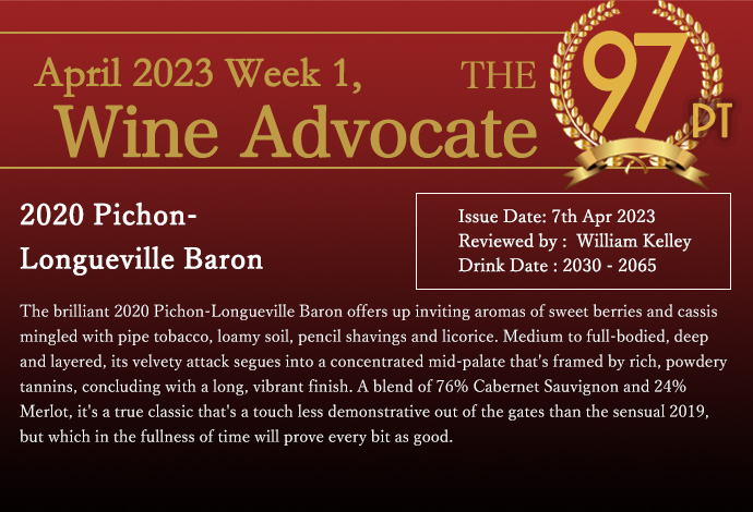 高級格付第2級ピション・ロングヴィル・バロンの高評価続出[2020]年ものが限定で少量入荷!