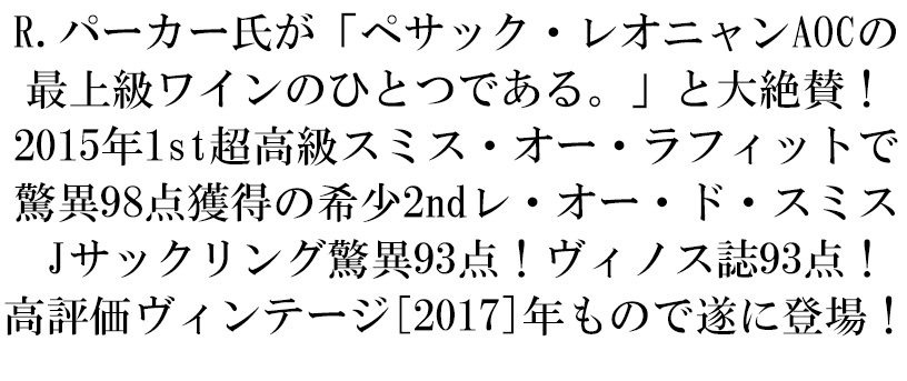 ボルドー・グラーヴ格付フルボディ赤ワイン愛好家大注目!ロバート・パーカー氏4~5つ星生産者であり、R.パーカー氏をして「ペサック・レオニャンAOCの最上級ワインのひとつである」と絶賛!