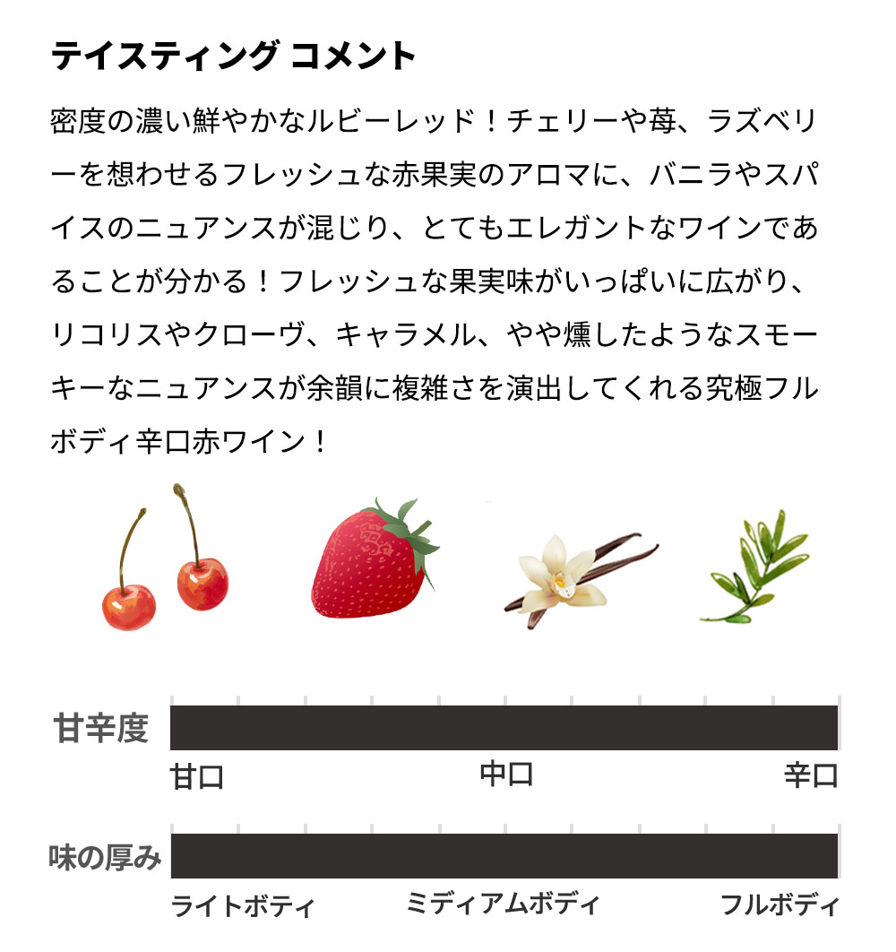 フレッシュな果実味がいっぱいに広がり、リコリスやクローヴ、キャラメル、やや燻したようなスモーキーなニュアンスが余韻に複雑さを演出してくれる究極フルボディ辛口赤ワインが極少量入荷!