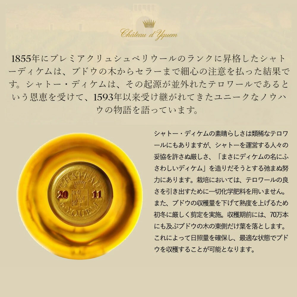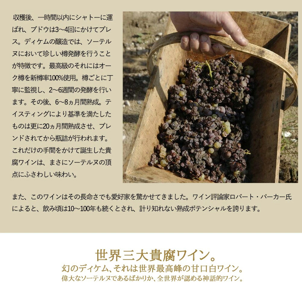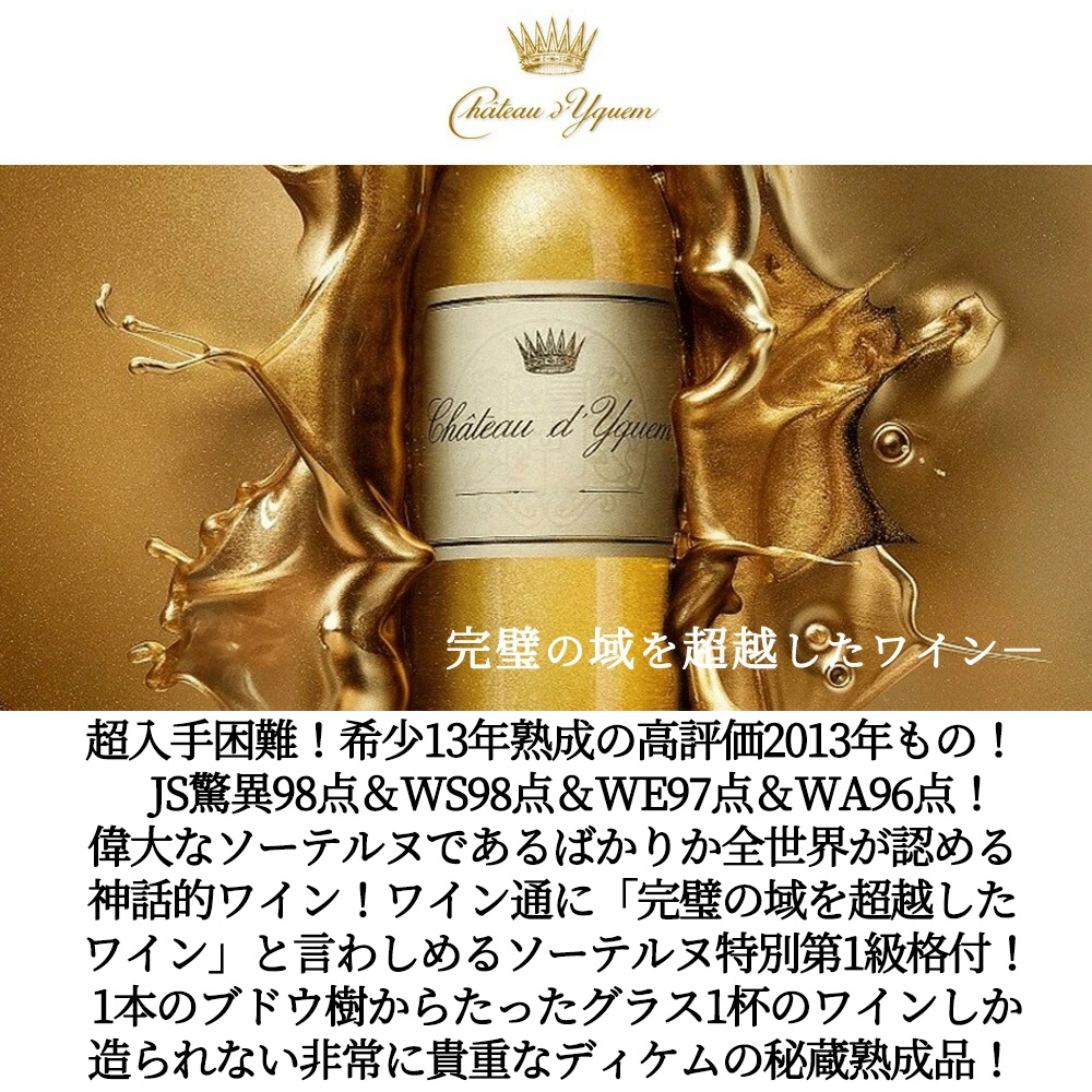 世界三大貴腐ワインの最高峰!類まれなワインの傑作!上流階級の偉大な象徴!至福の瞬間をぜひ!超高級ディケムの希少13年熟成品が限定で少量入荷!