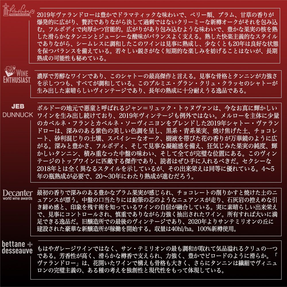 各ワイン誌の絶賛ぶりは脱帽もの!しかもスーパーグレイトヴィンテージ[2019]年もの!