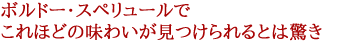 ボルドー・スペリュールにこれほどの味わいが見つけられるとは驚きです。生き生きとした果実のアピールを受けながらも、最良の熟成を遂げた証であるチョコレートのようなオークのニュアンスを感じます。良いブドウを育て上げ、レベルの高い醸造を成し得たシャトーだからこそ完成できるこの逸品です。