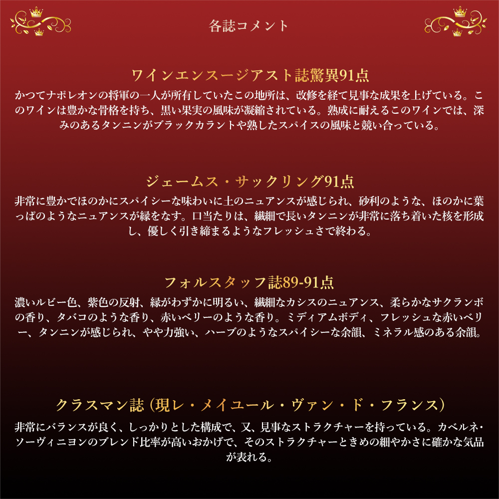 ■葡萄品種:カベルネ・ソーヴィニヨン51%/メルロ48%/プテイ・ヴェルド1%